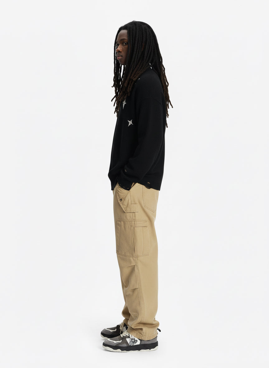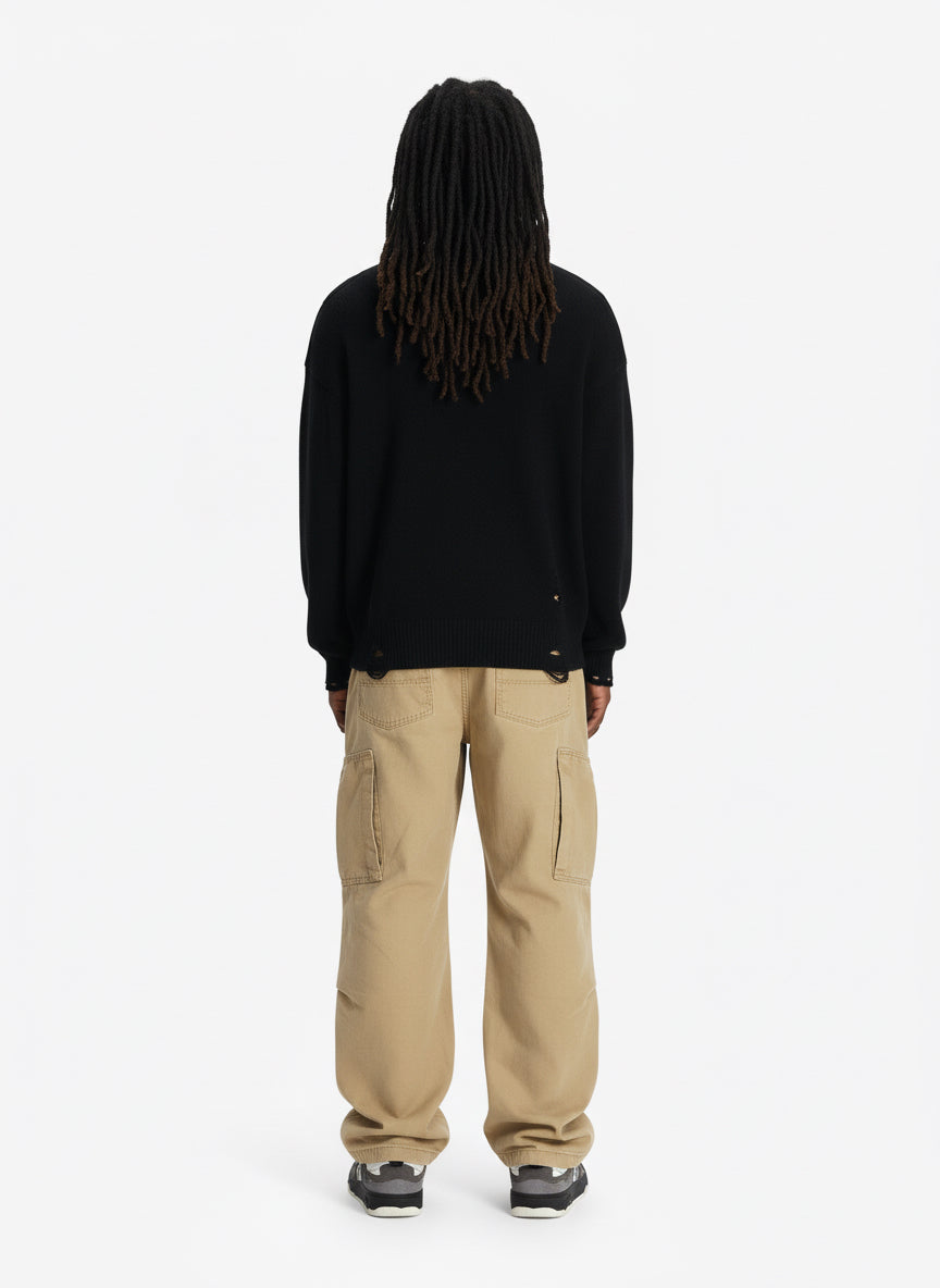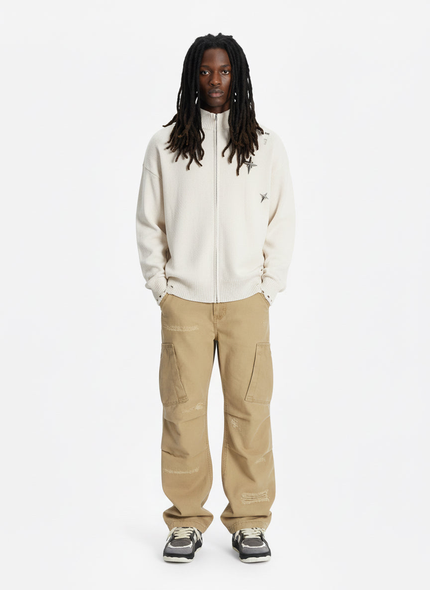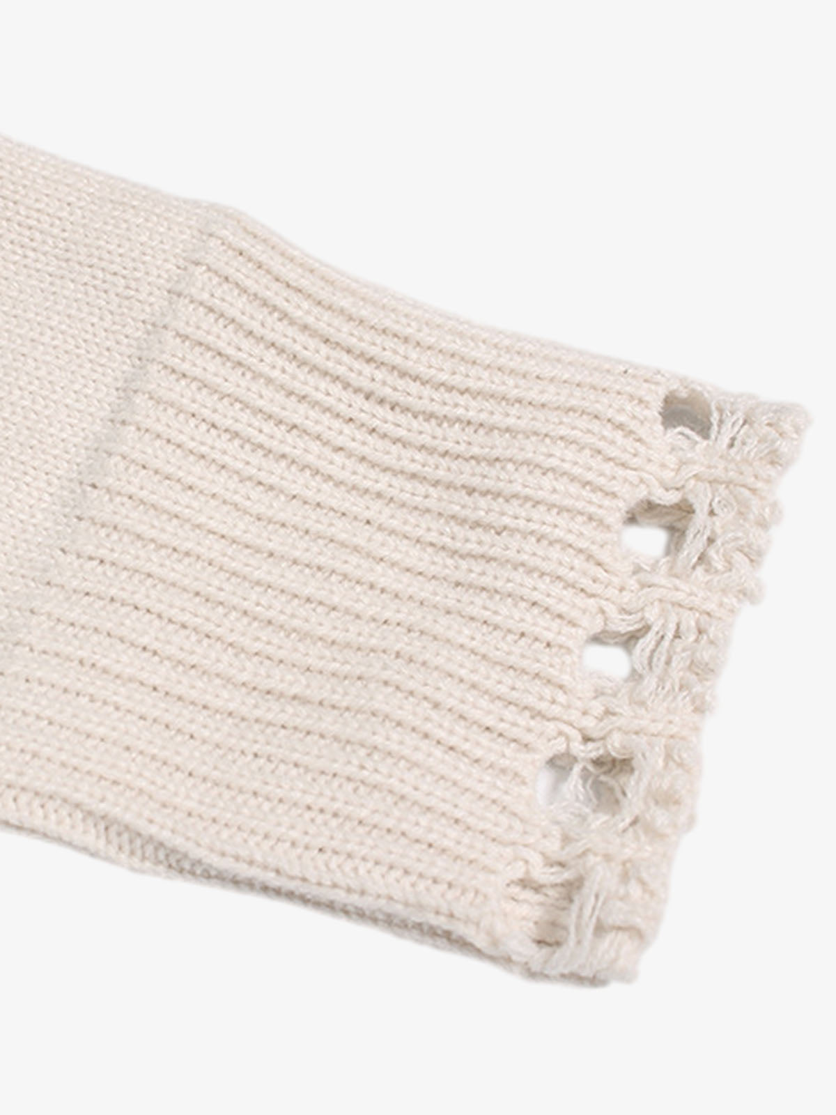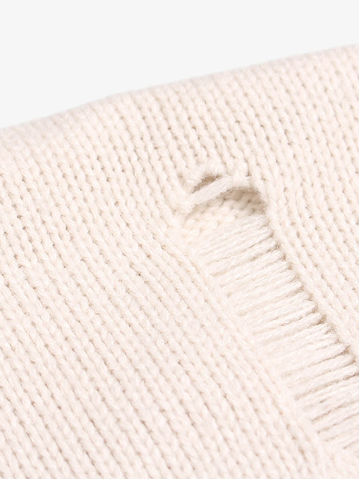 Distressed Ripped-Edge Turtleneck Diamond Star Zipper Knitted Sweater