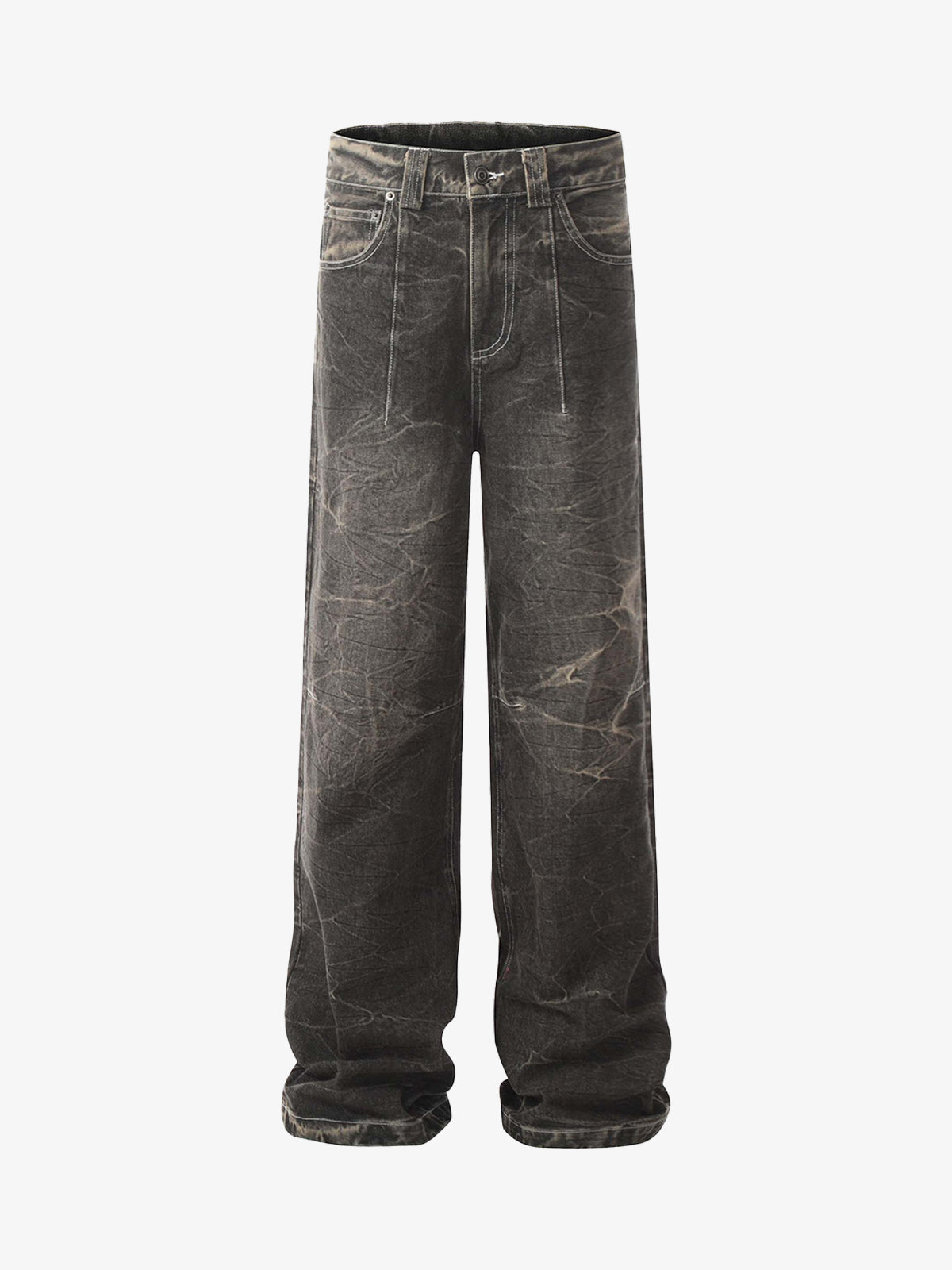 Distressed Texture Washed Straight-Leg Jeans