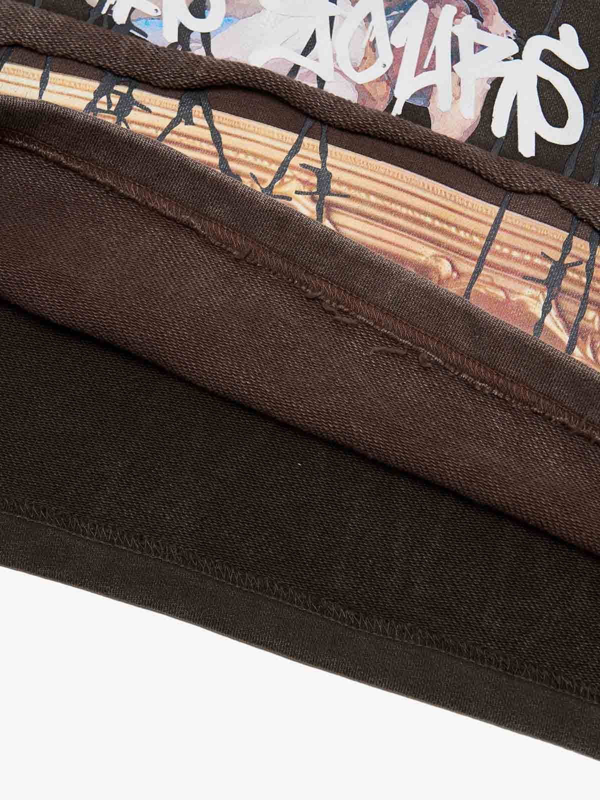 • Design Elements: Large graphic print on the front, distressed details, bold lettering