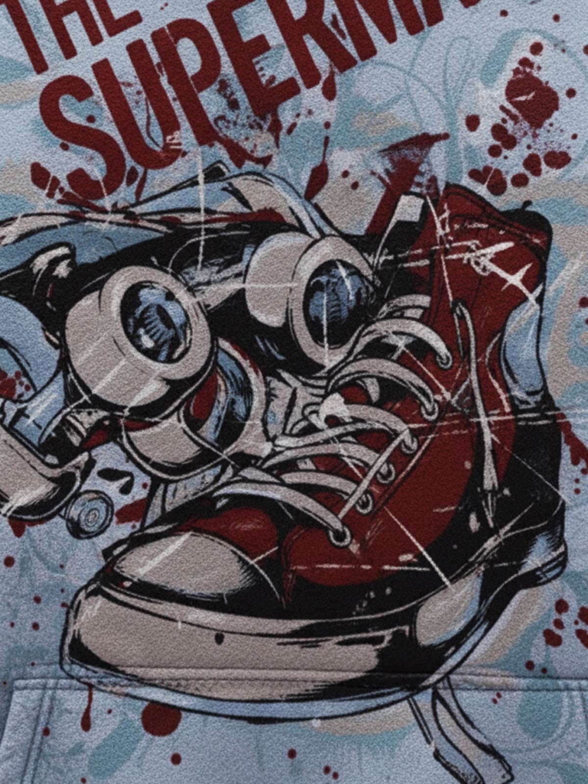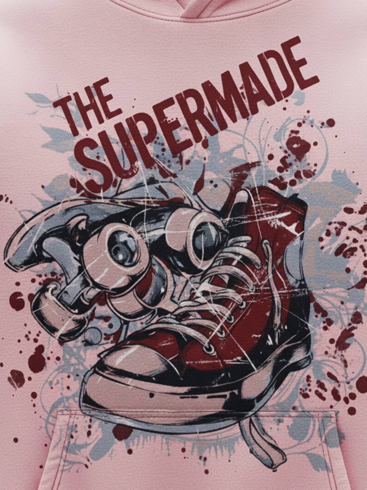 • Design Elements: Features a vibrant sneaker graphic with splatter art effects and bold text