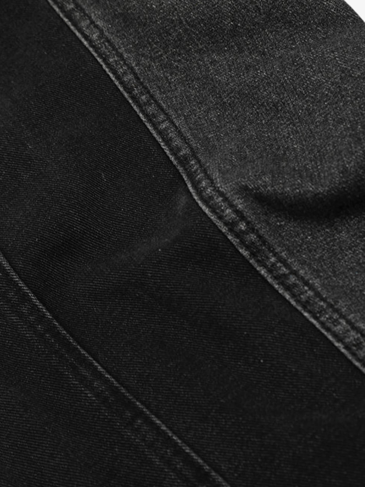 Denim Faux Two-piece Plaid Detachable Scimitar Jeans - 2435