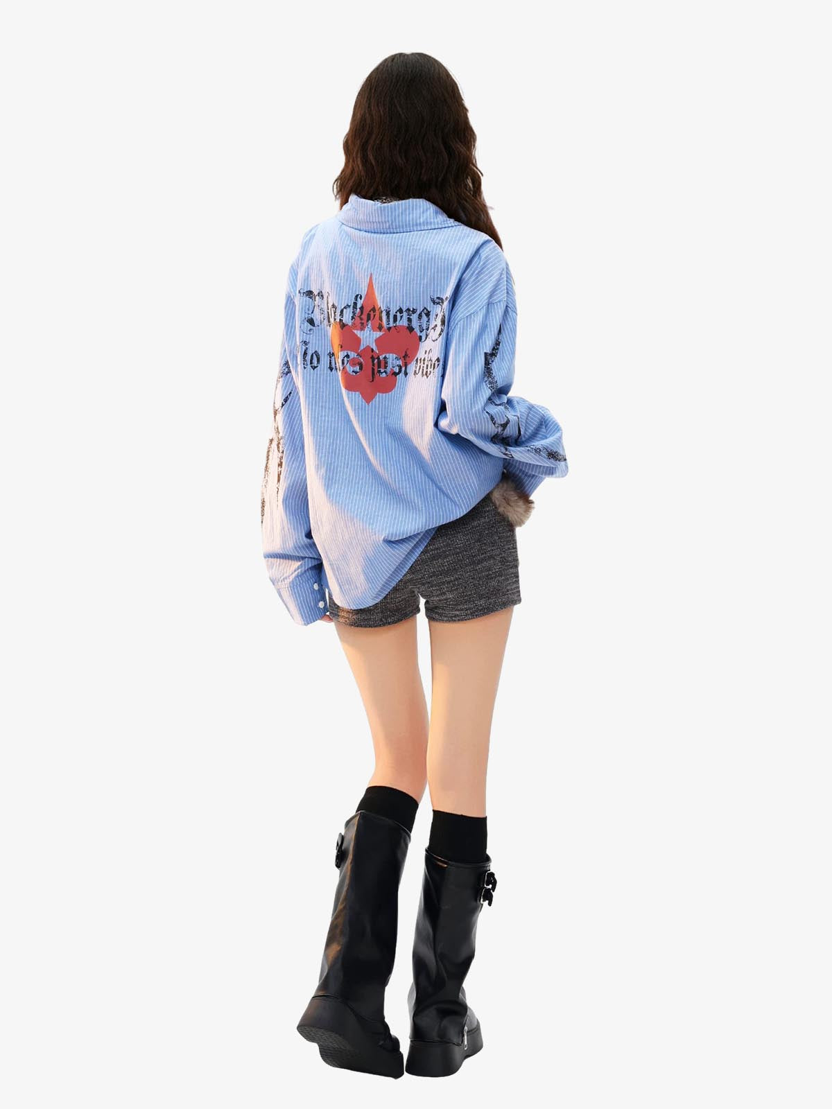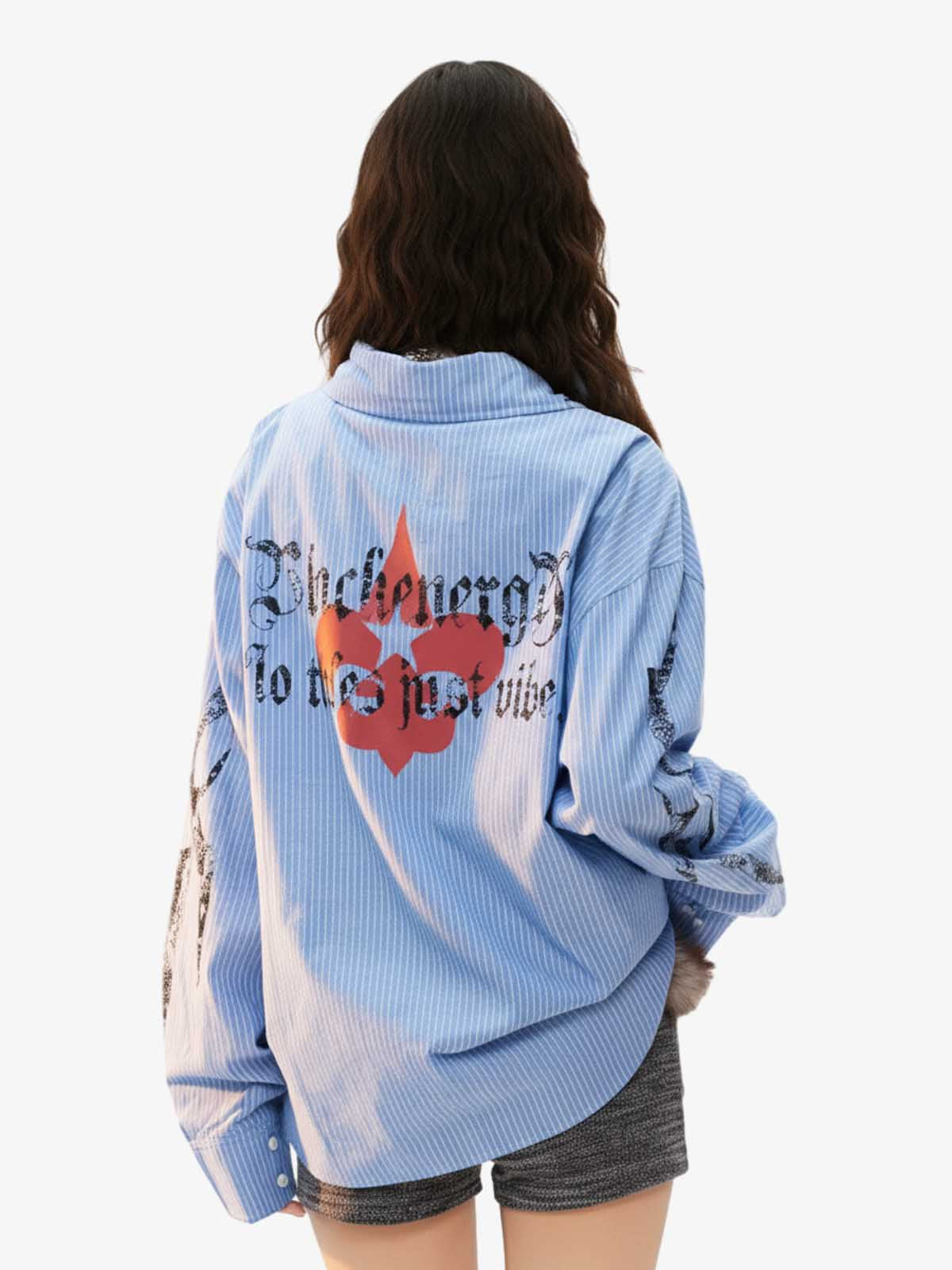 Gothic Embroidered Pinstripe Button-Up Shirt