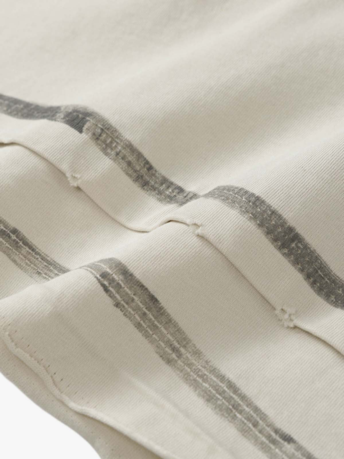 • Design Elements: Bold graphic print with distressed details, layered sleeve design
