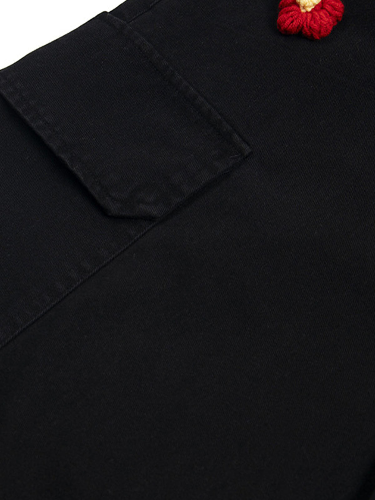 Retro Floral Embroidered Pleated Multi-Pocket Cargo Jorts