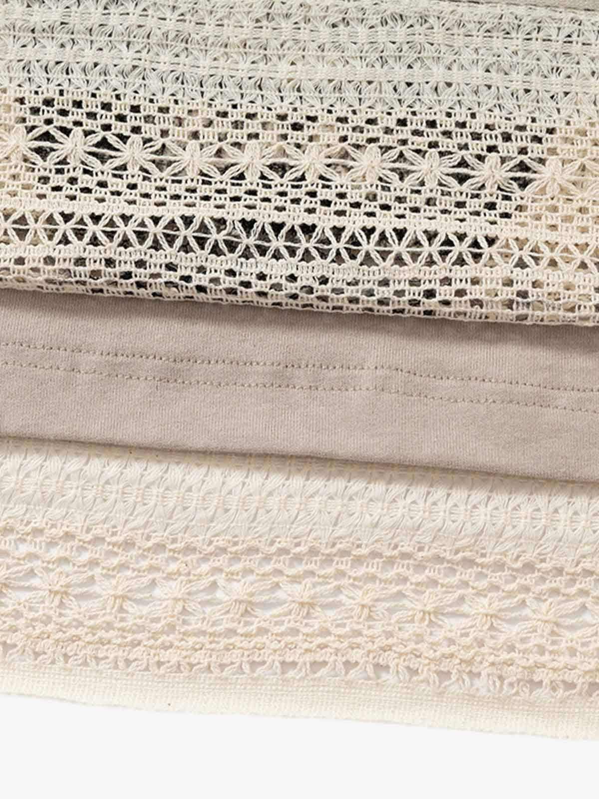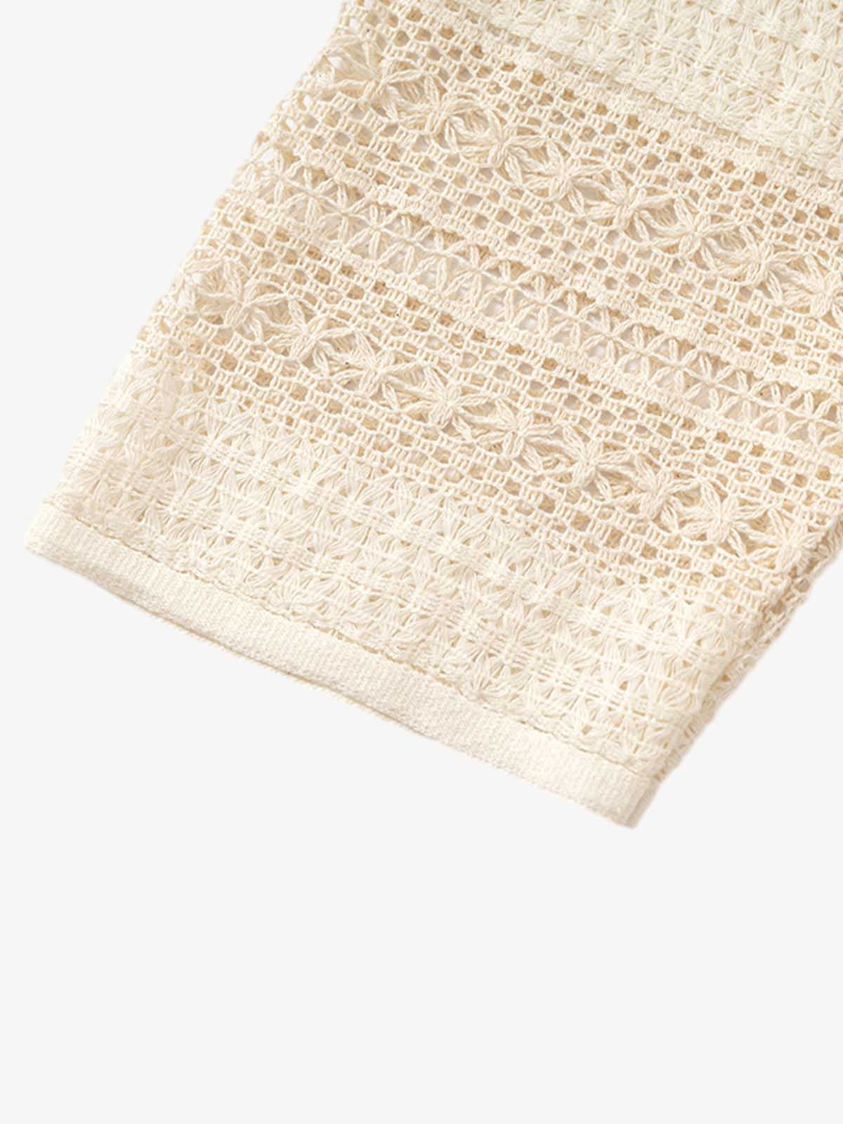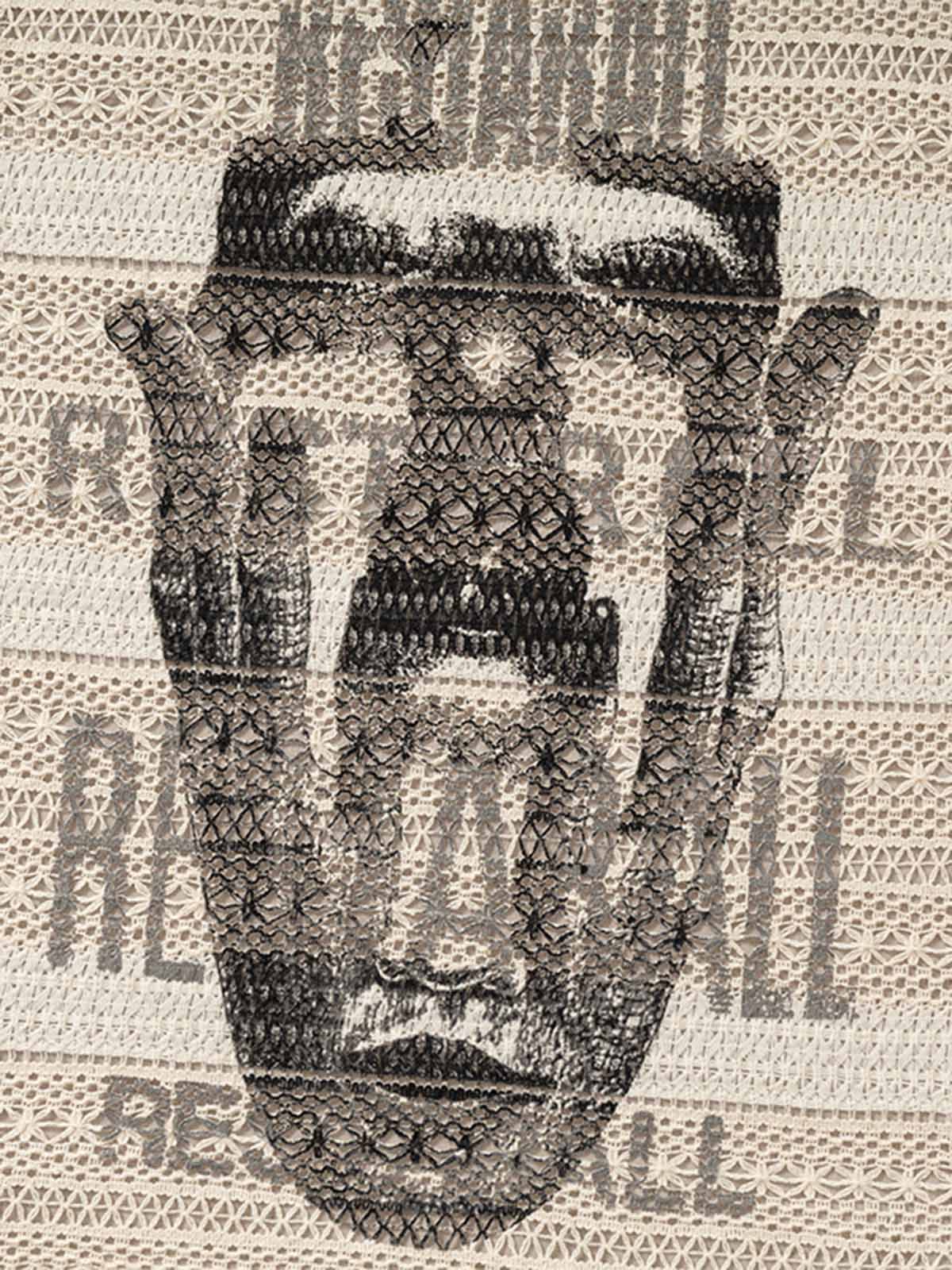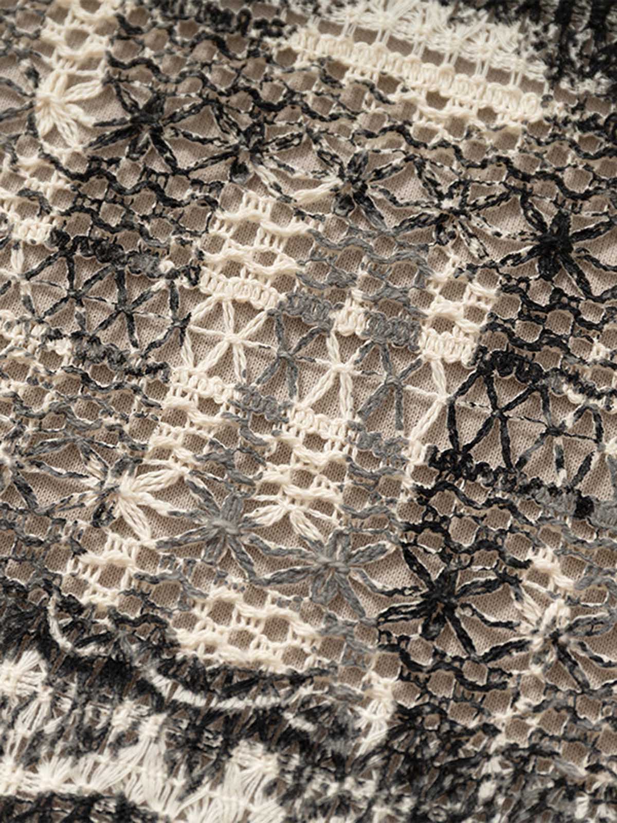 • Design Elements: Intricate face graphic print, openwork knit pattern