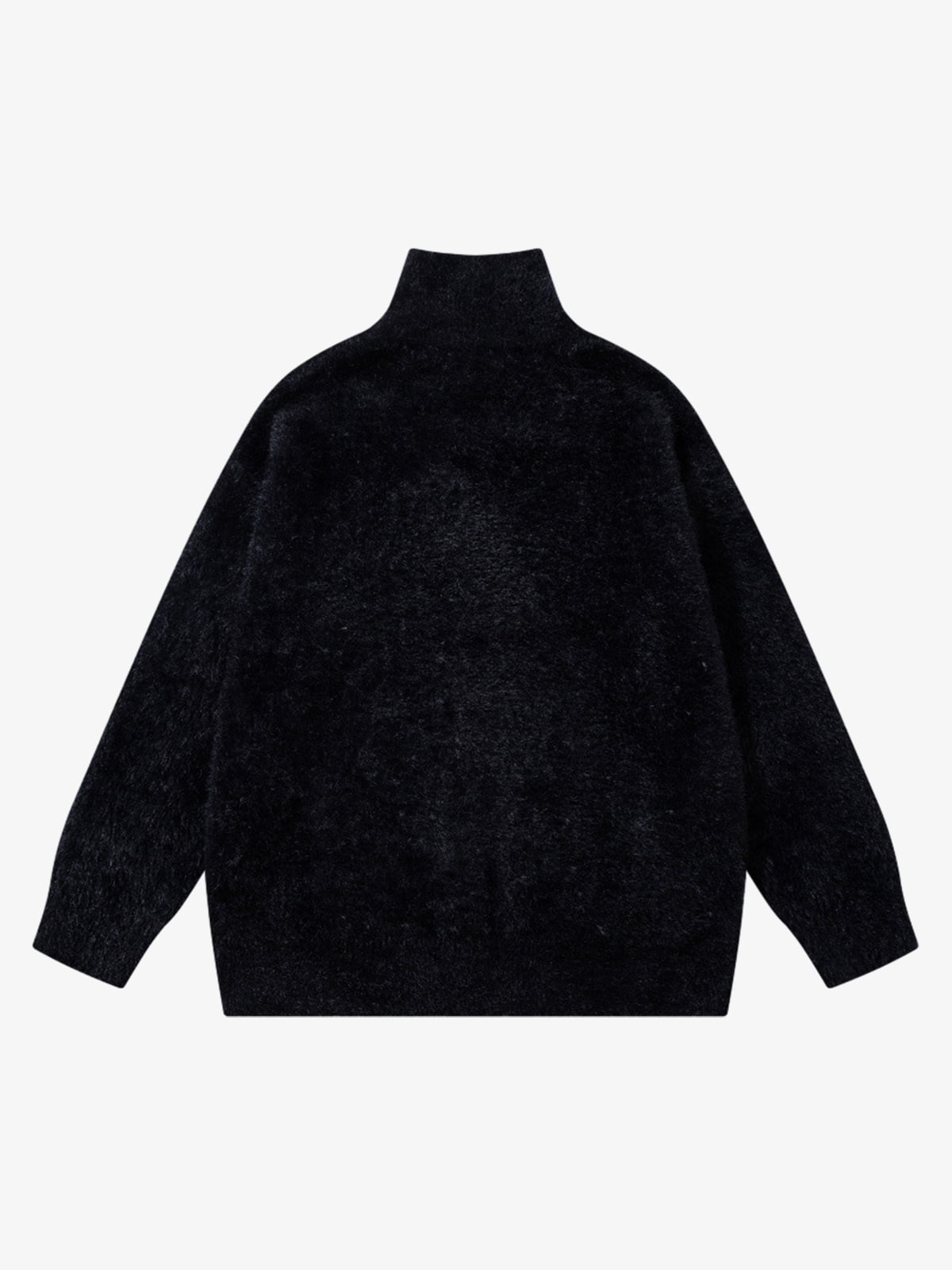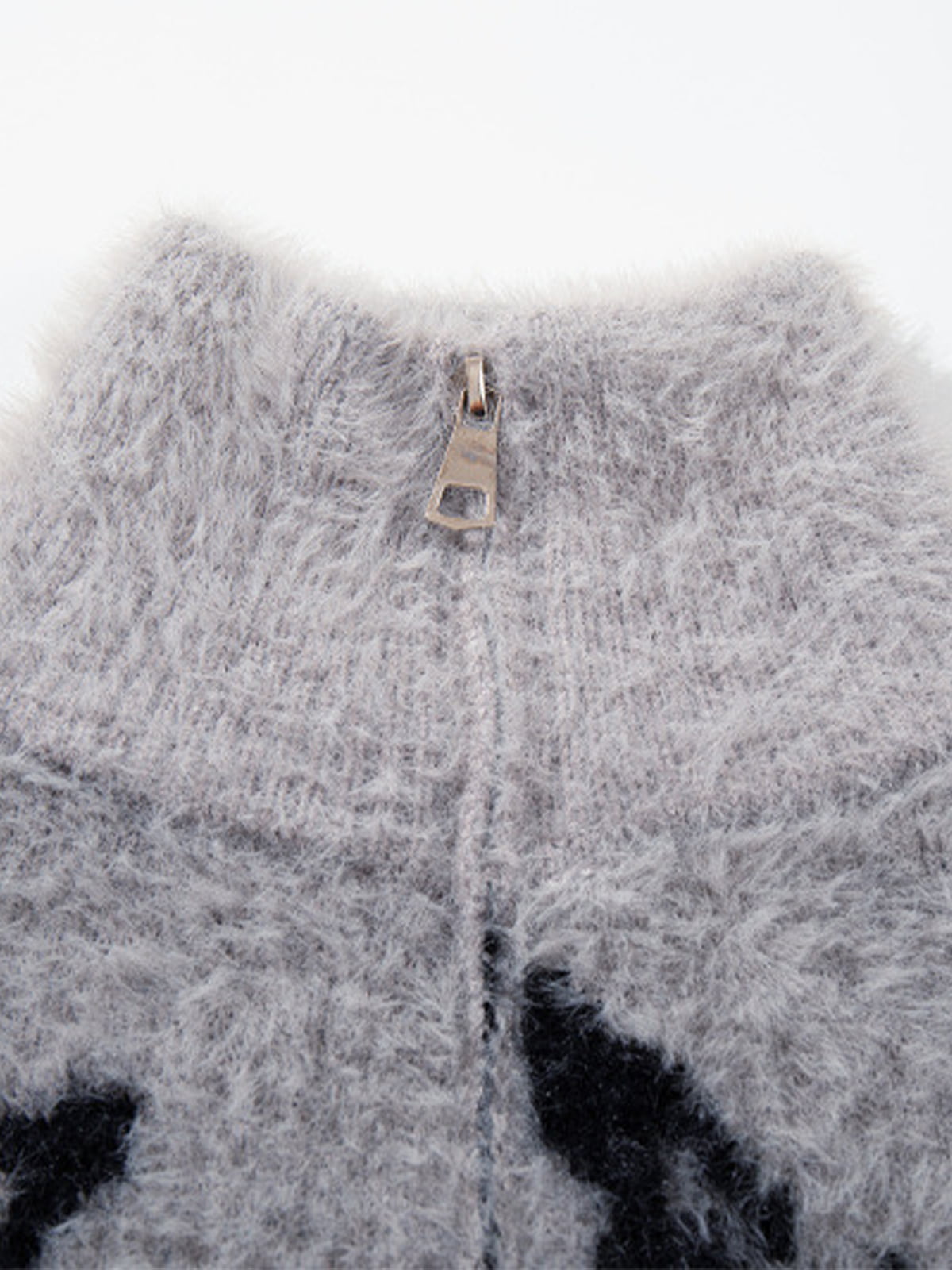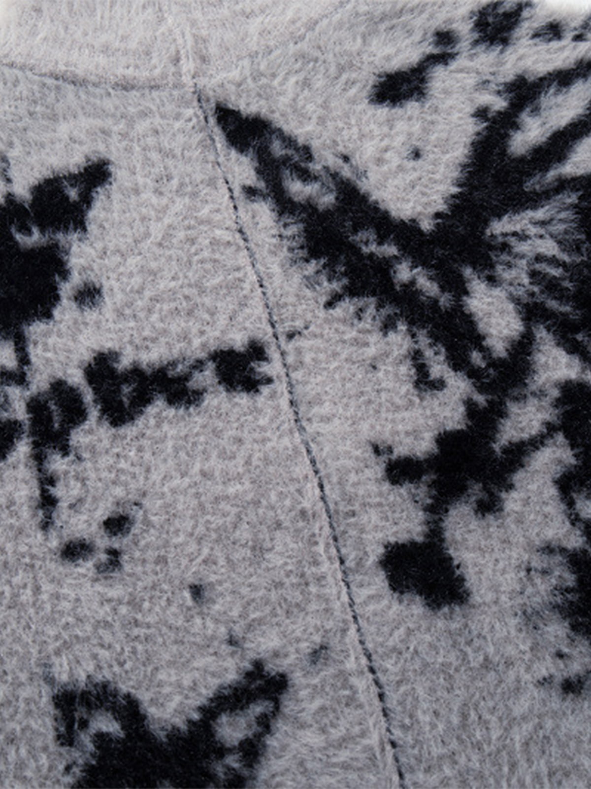Ink Butterfly Jacquard High-Neck Zip Cardigan Sweater