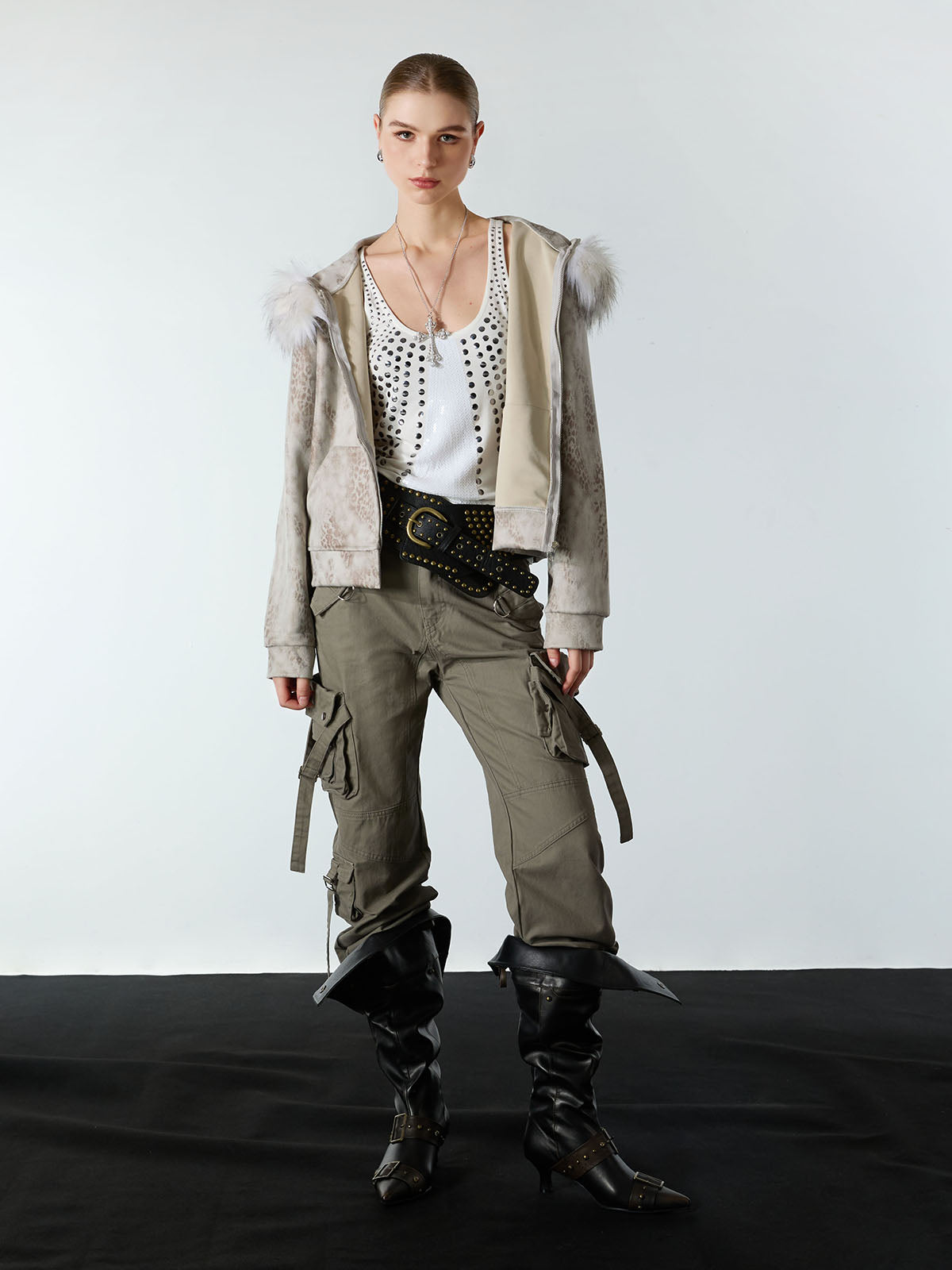 Cheetah Zipper Cardigan Fur Hooded Jacket