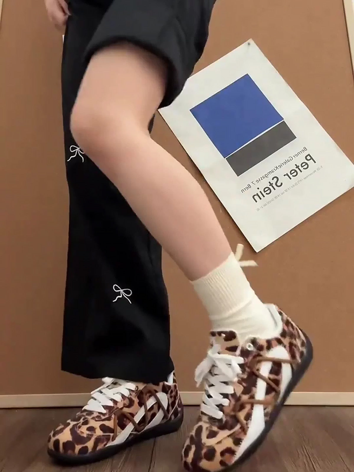 • Design Elements: Leopard print pattern, white laces, stylish overlays