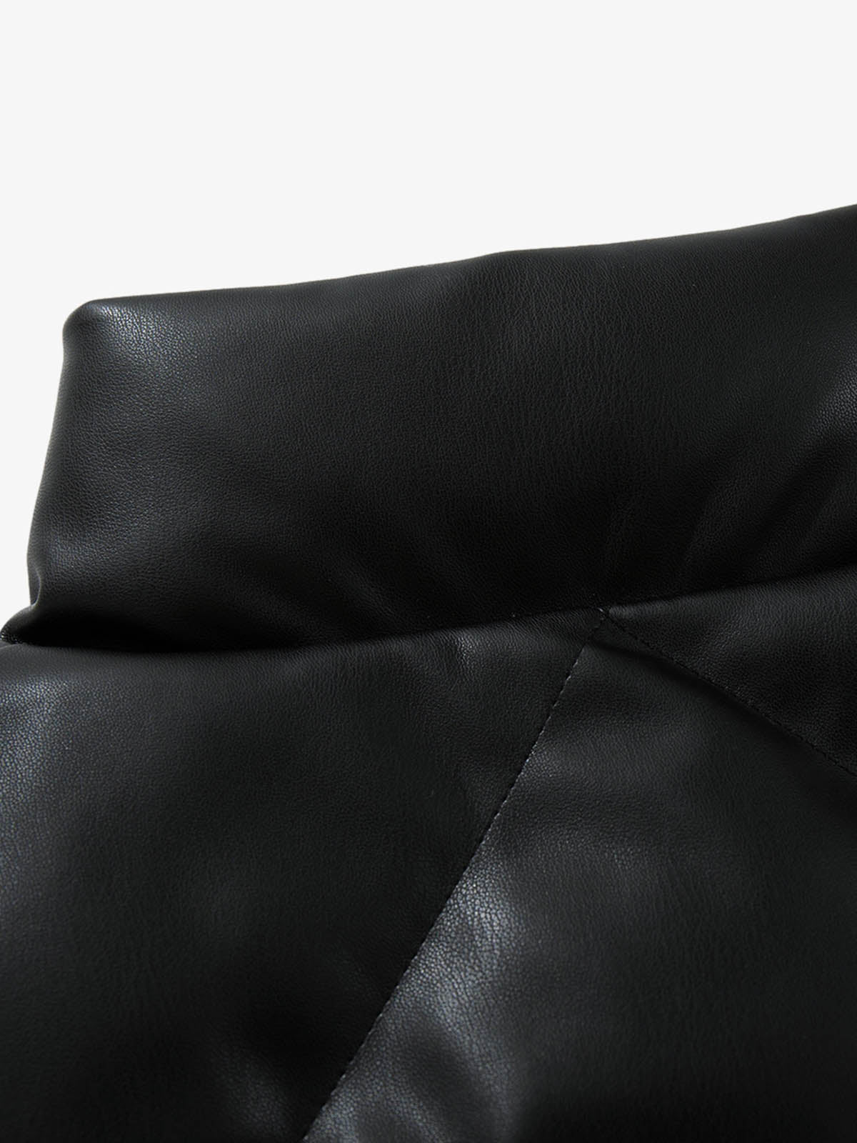 Minimalist Faux Leather Stand Collar Puffer Vest