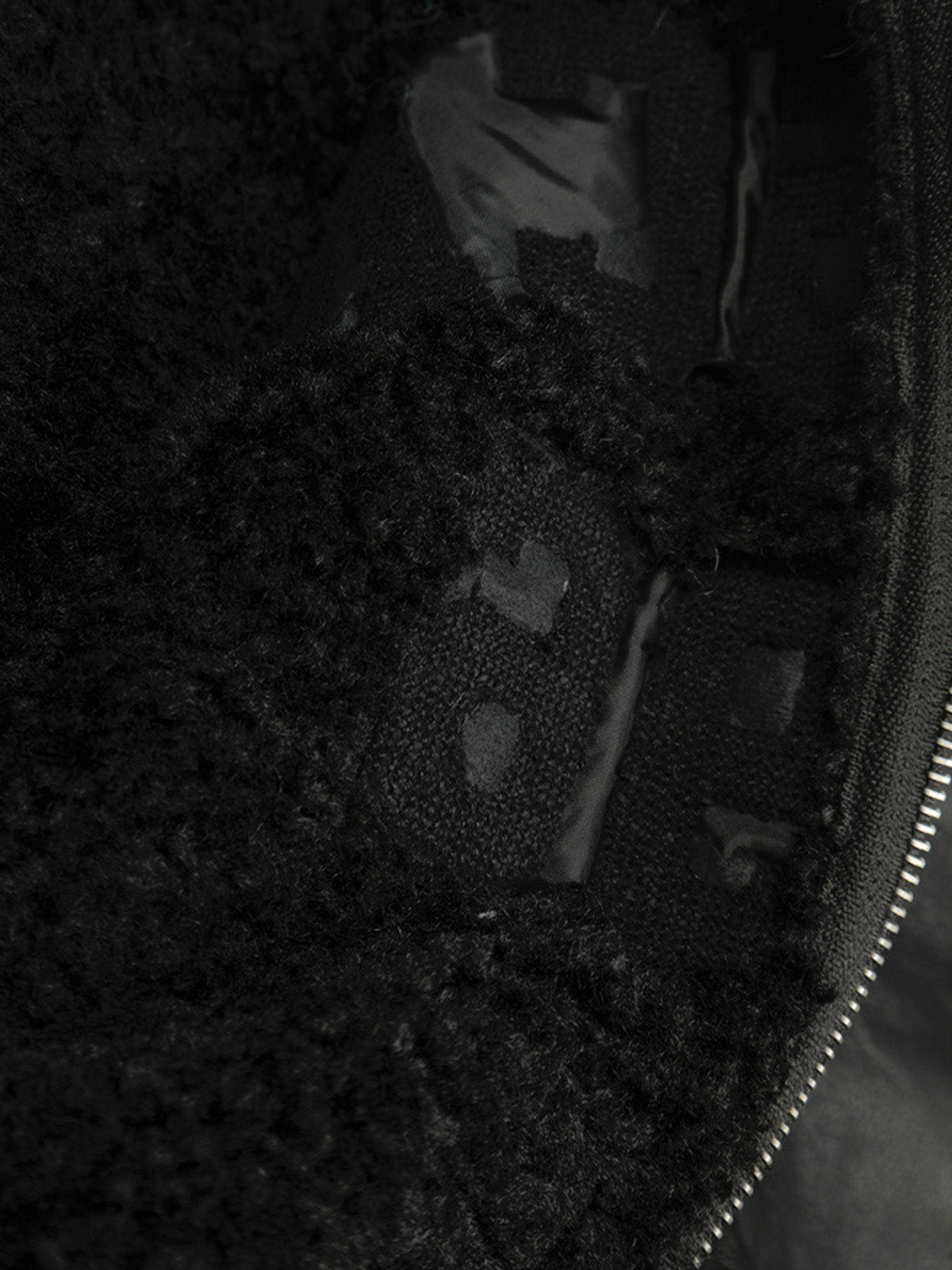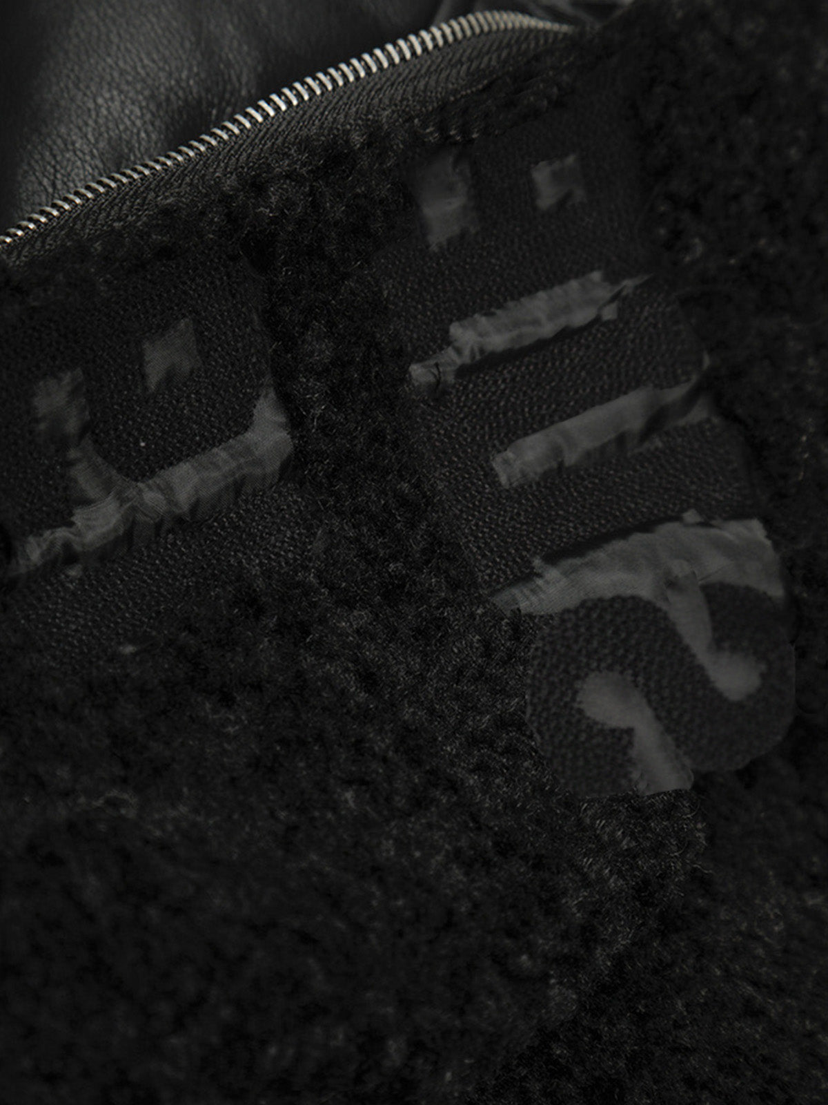 PU Leather Faux Fur Hooded Trim Fleece Spliced Zip Up Jacket