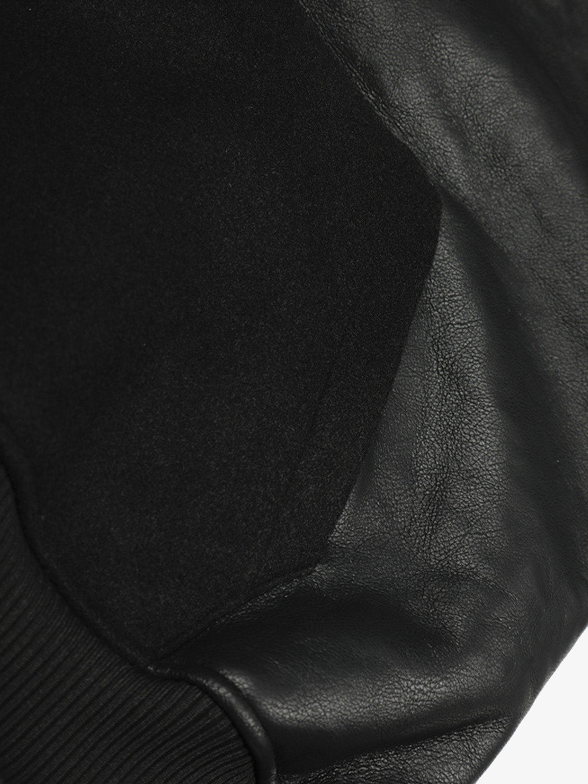 • Design Elements: Faux fur collar, bold text print, and contrasting panel design
