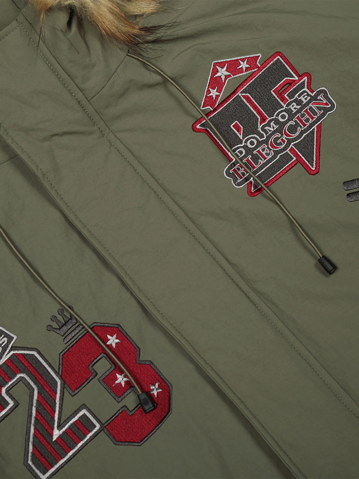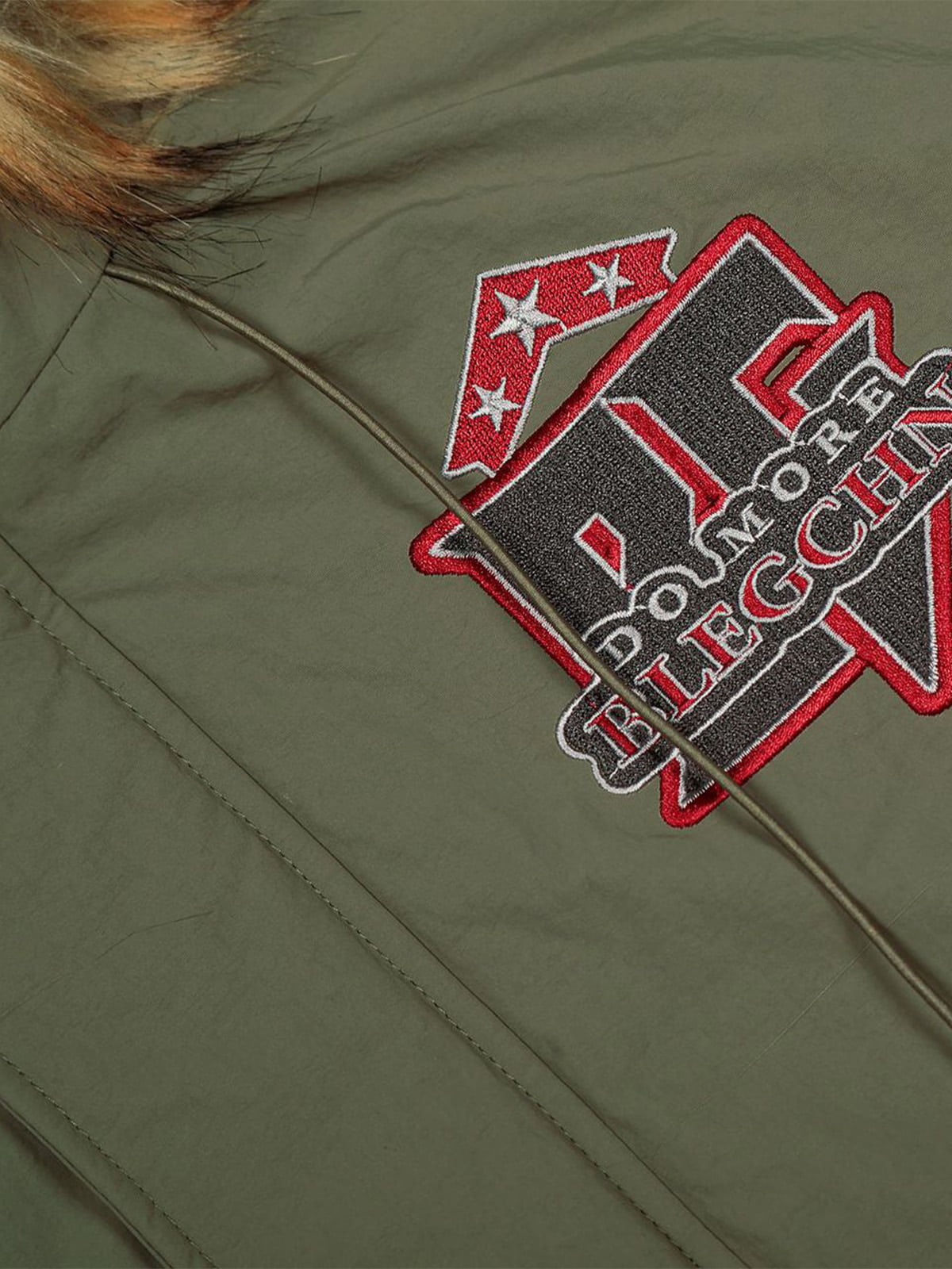 Retro Badge Embroidered Fur Collar Bomber Jacket