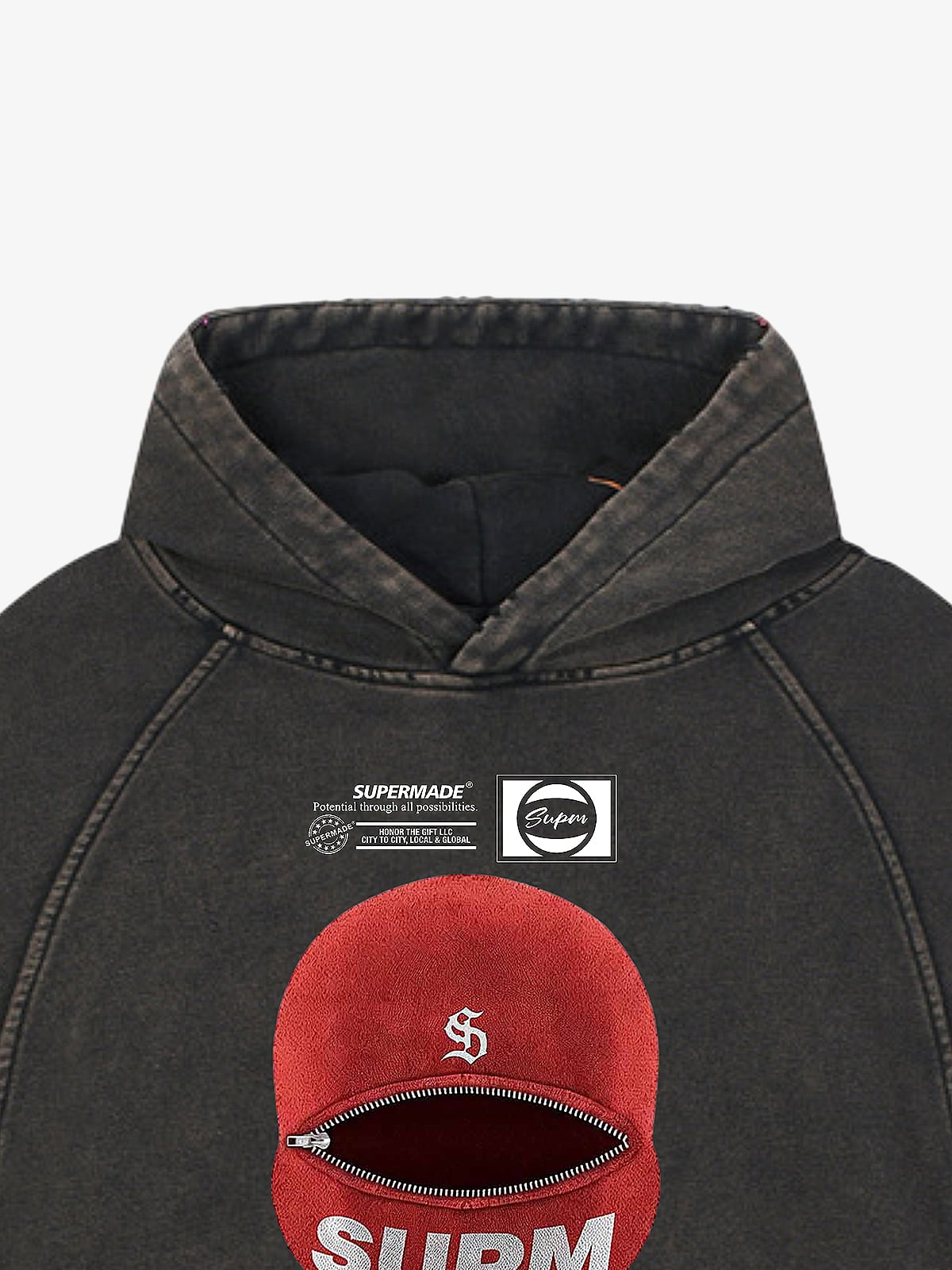 • Details: Front Snake Graphic Print, Checkerboard Hem Detail, Drawstring Hood, Ribbed Cuffs and Hem