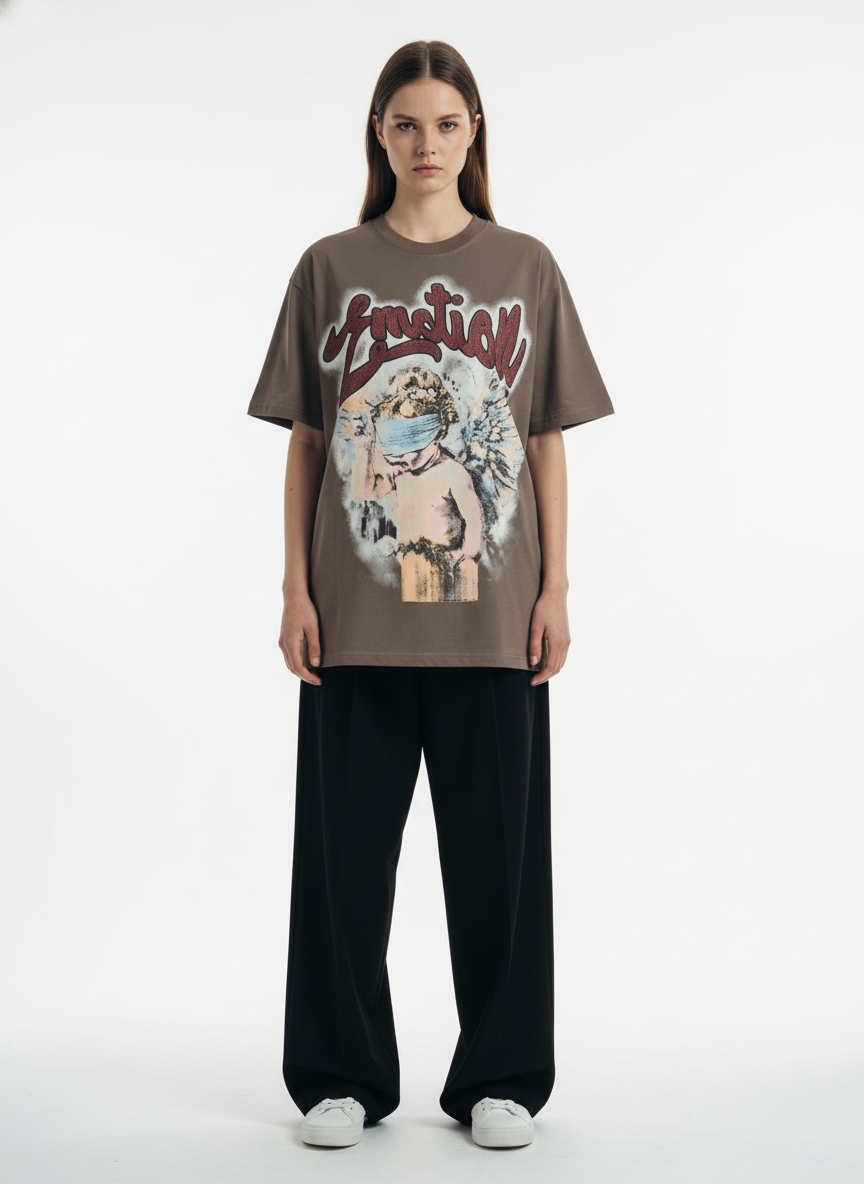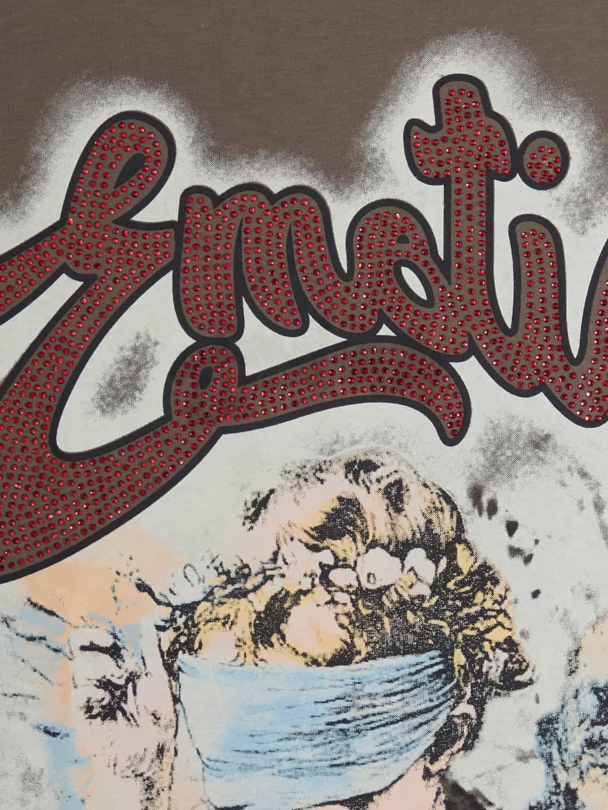 Retro Blindfold Angel Rhinestone Letter Graphic T-Shirt
