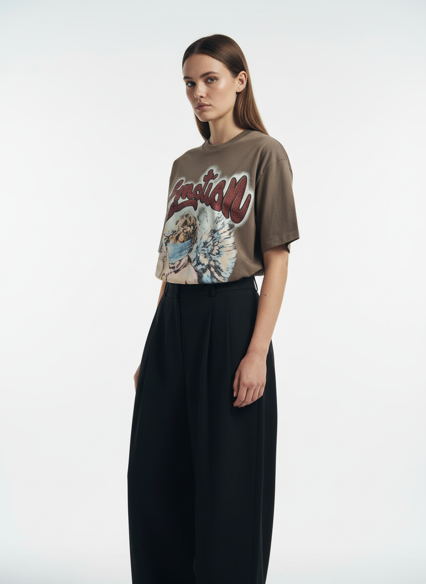 • Design Elements: Striped Sleeves, Front Graphic Print, Contrasting Trim