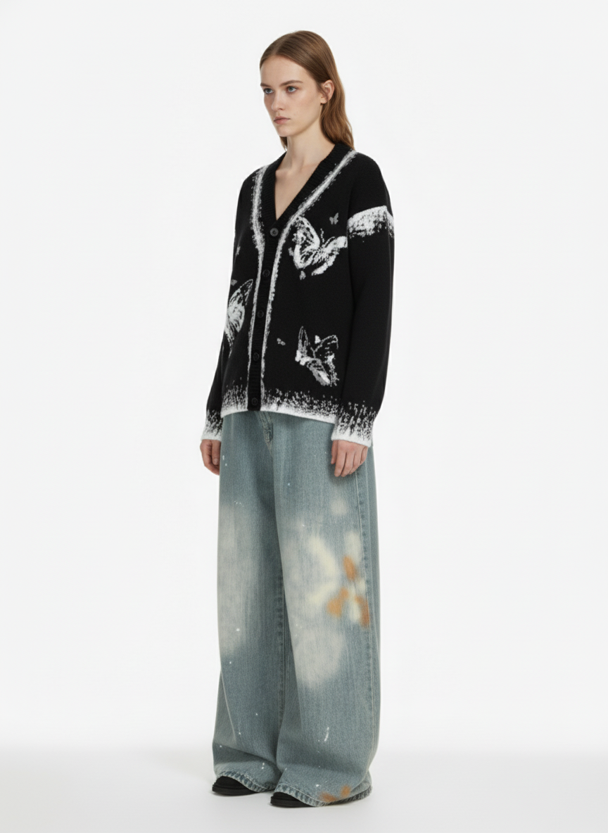 Retro Butterfly Gradient Knit Cardigan Sweater