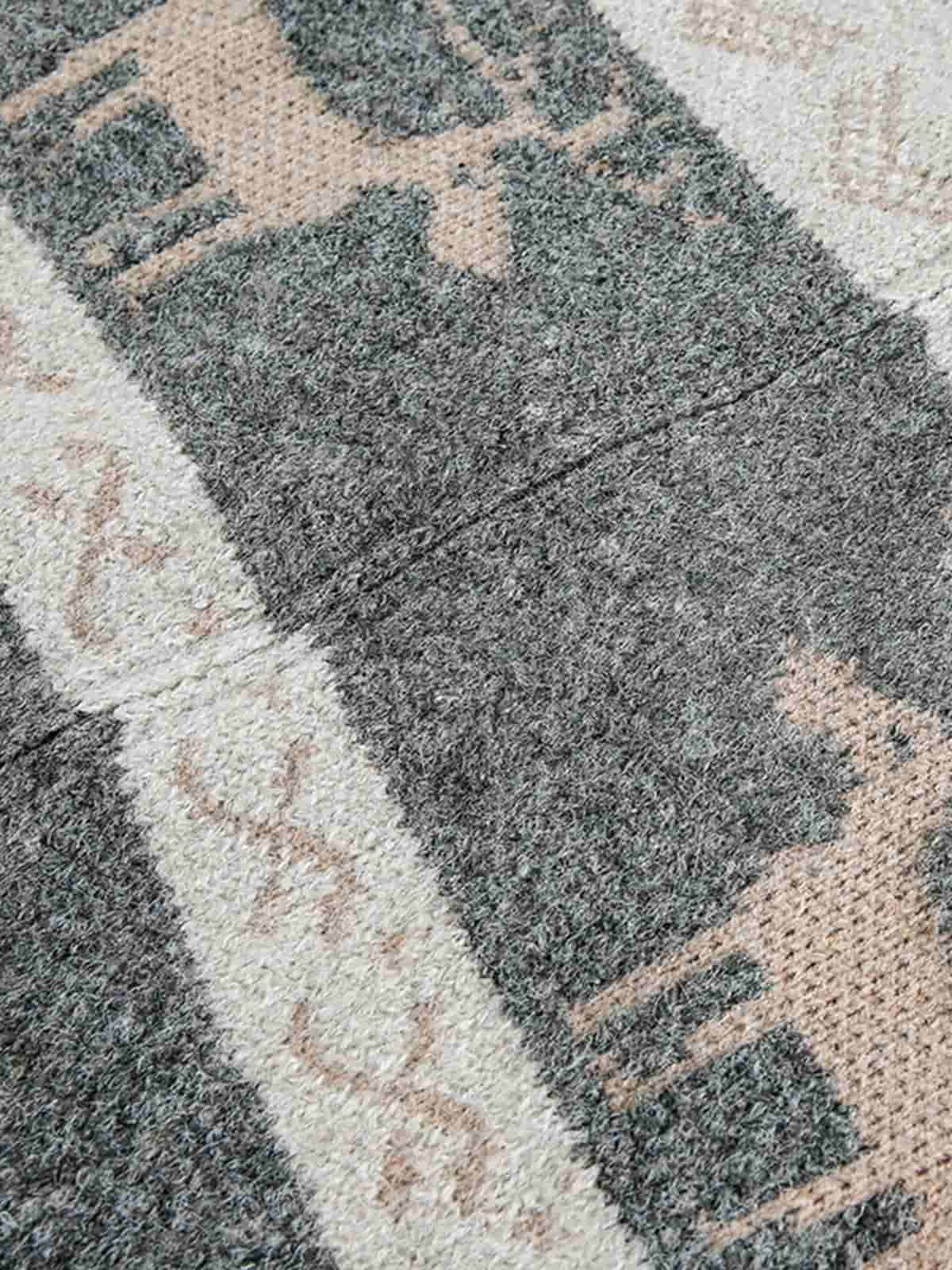 Retro Christmas Reindeer Pattern Zip-Up Knit Cardigan Sweater