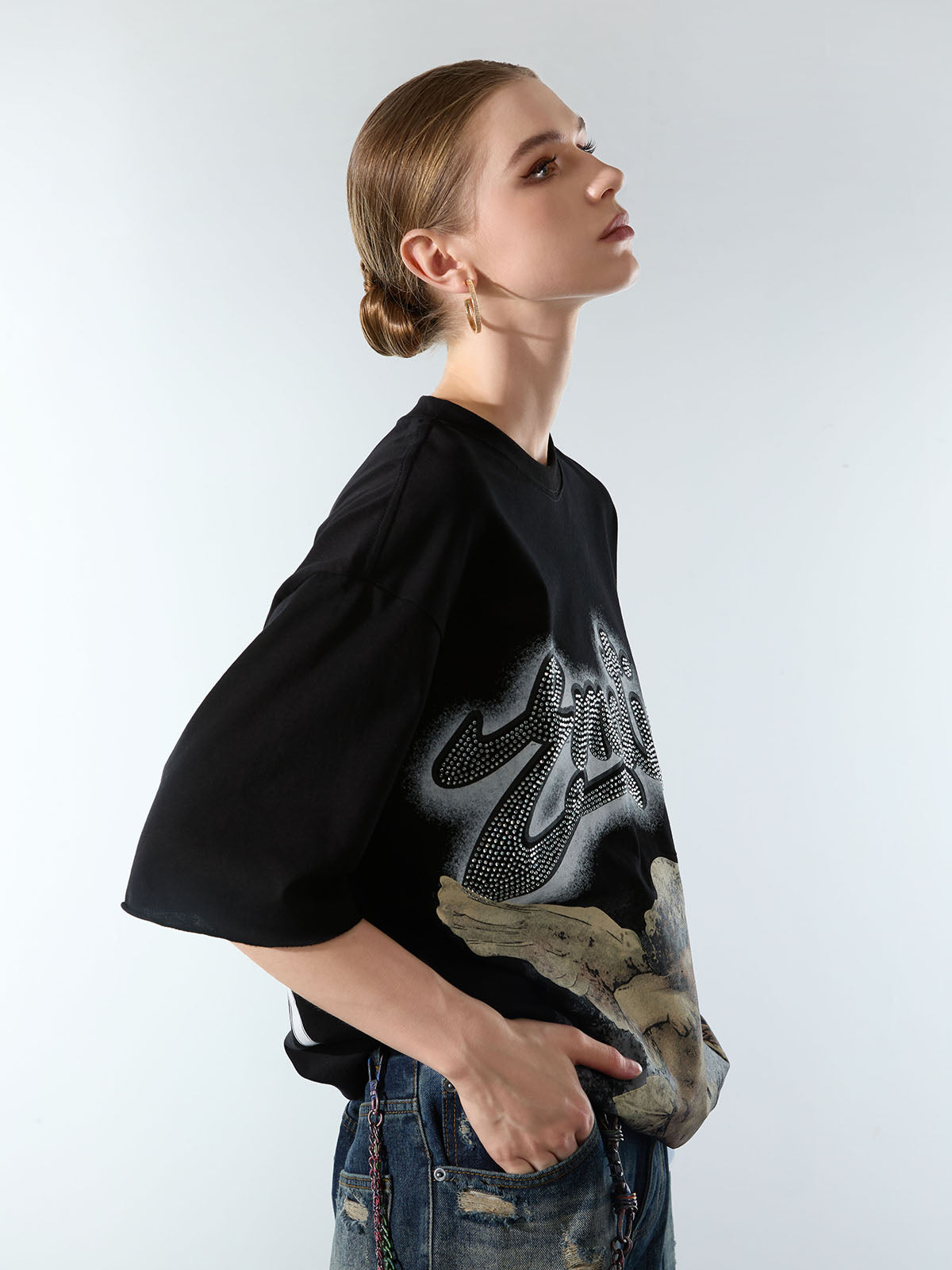 • Design Elements: Striped Sleeves, Front Graphic Print, Contrasting Trim