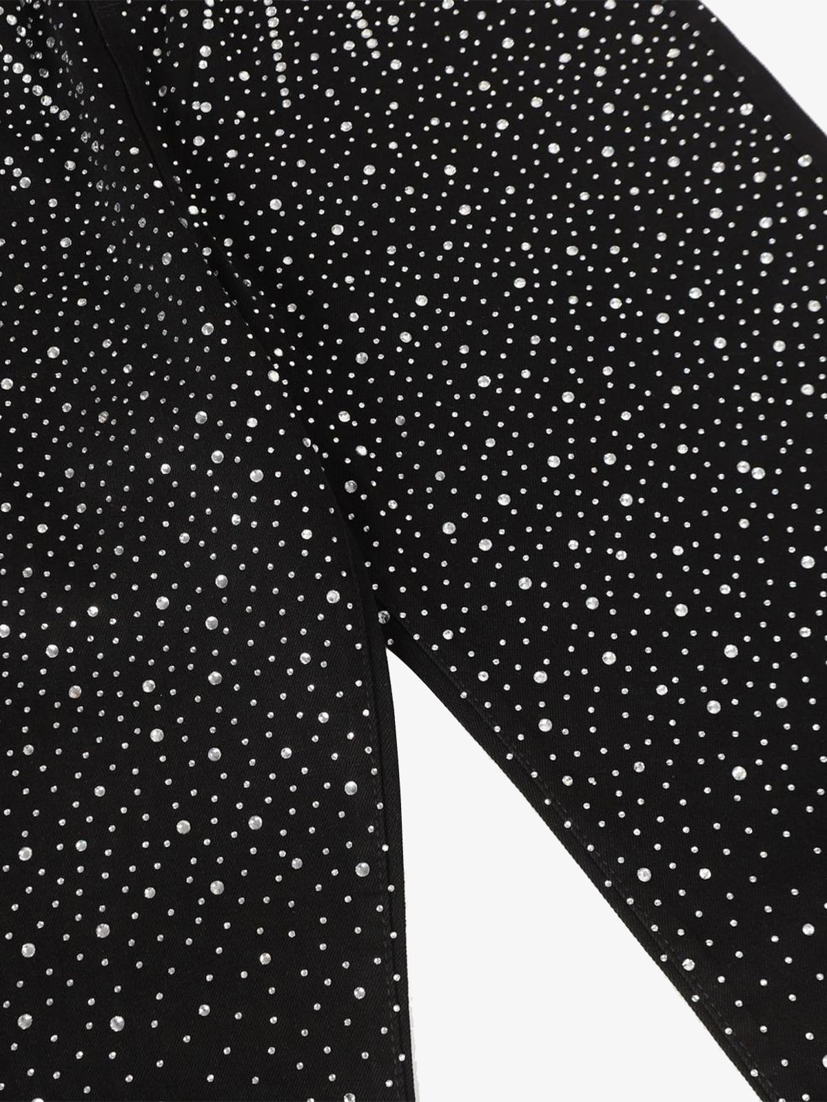 • Design Elements: Eye-catching sparkling studs, wide-leg silhouette, classic high-rise waist