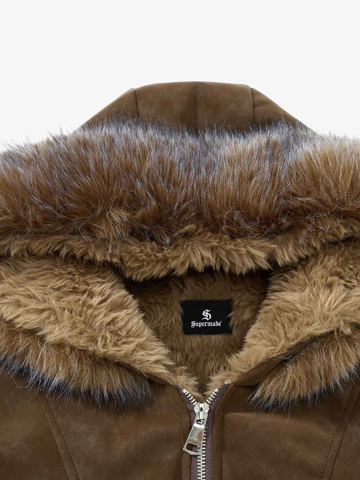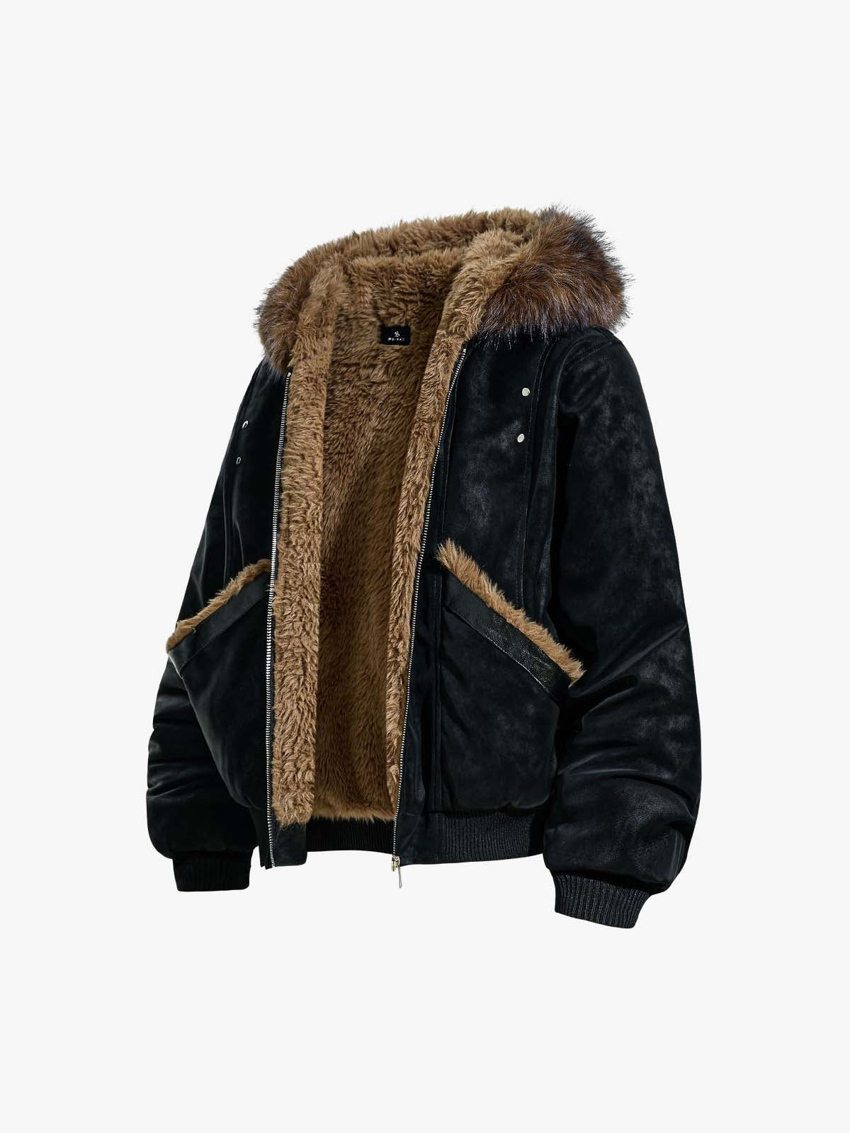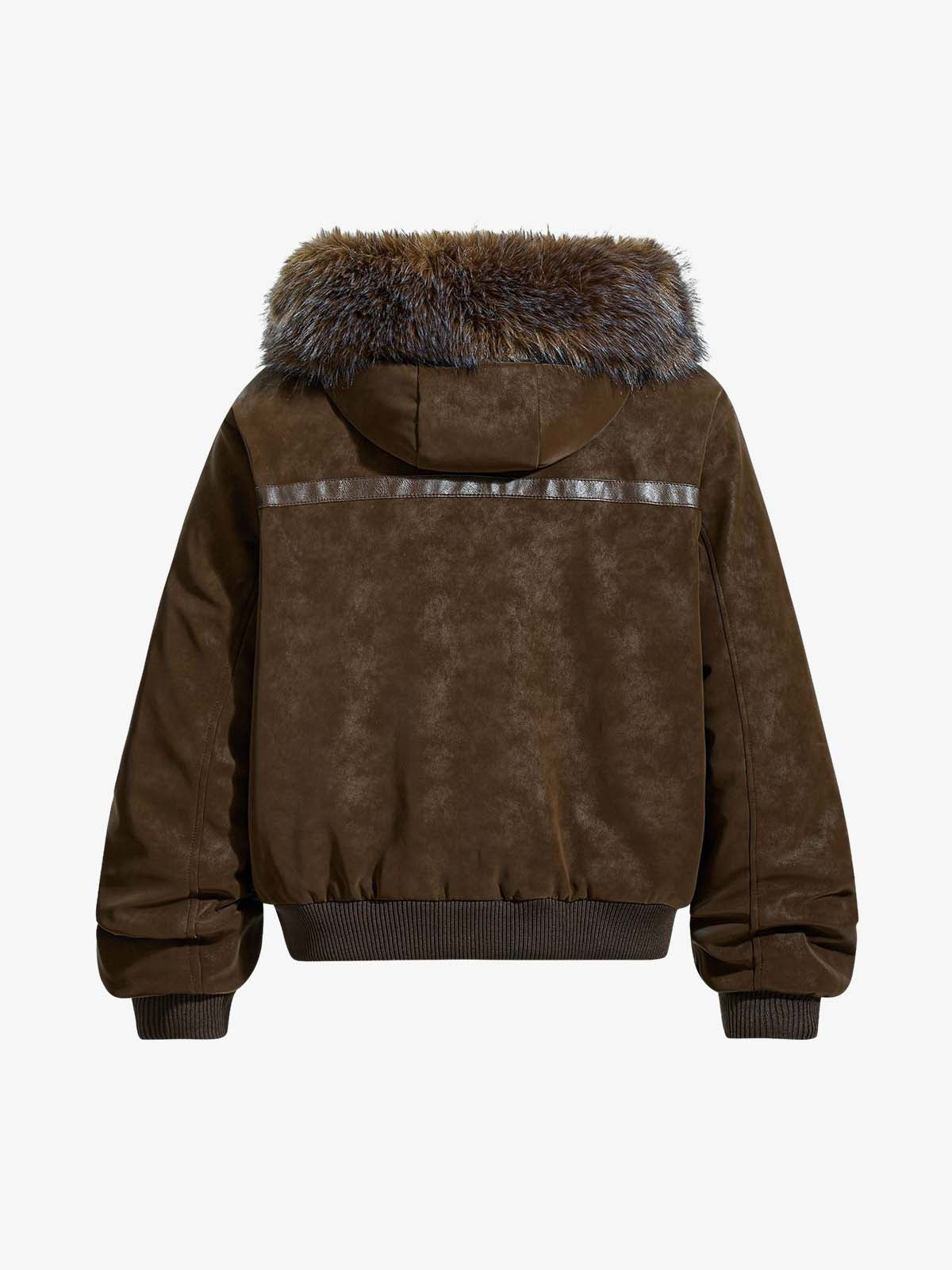 Retro Detachable Faux Fur Collar Suede Fleece Hoodie Jacket