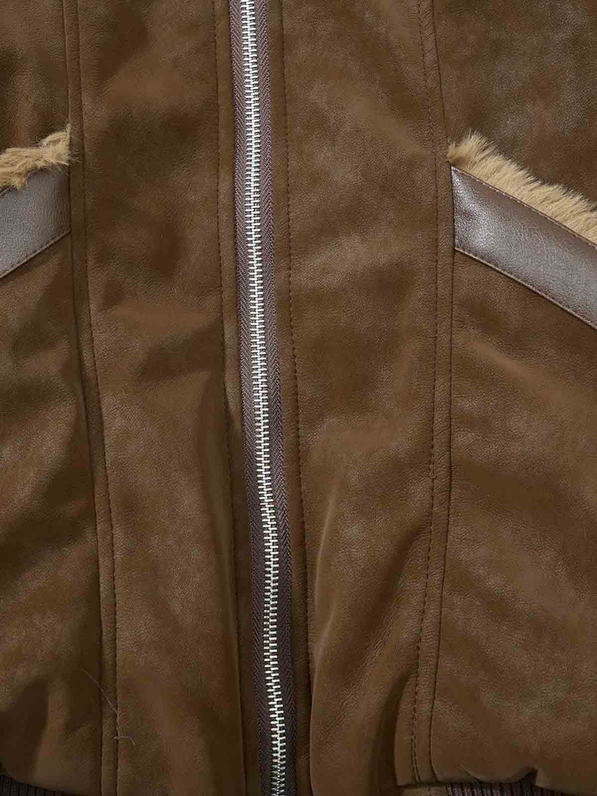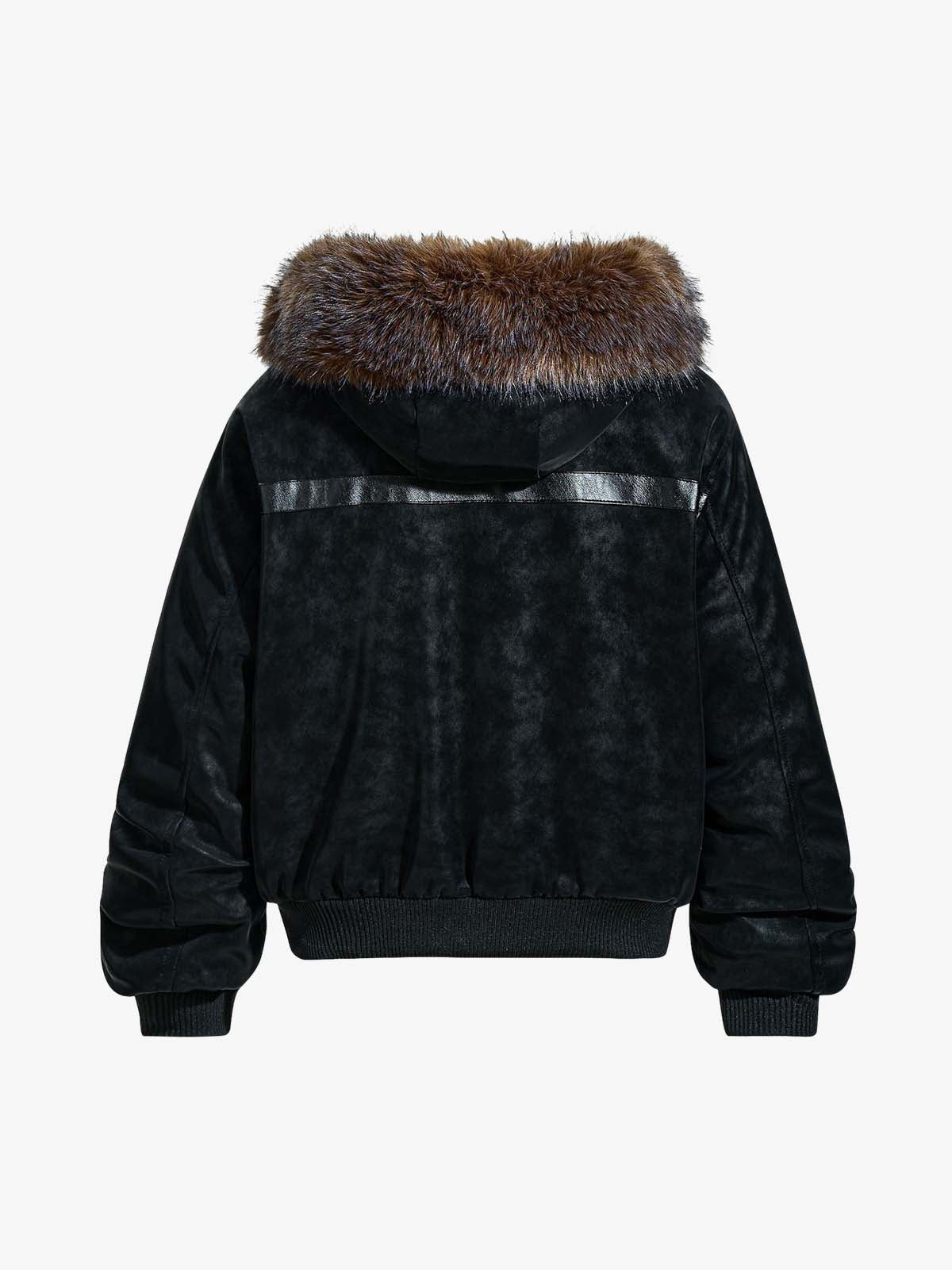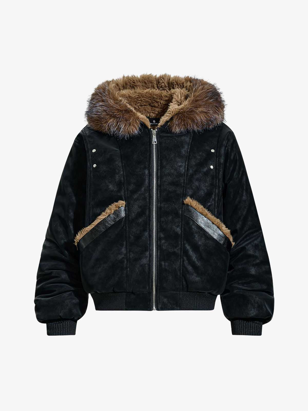Retro Detachable Faux Fur Collar Suede Fleece Hoodie Jacket
