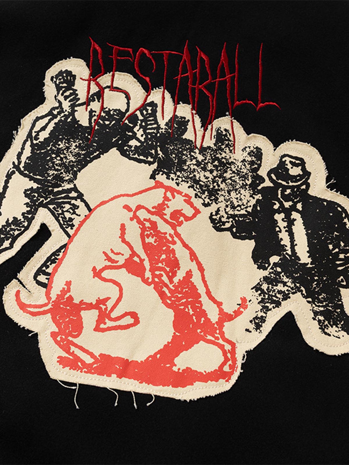 Retro Portrait Letter Print Long-sleeved T-shirt