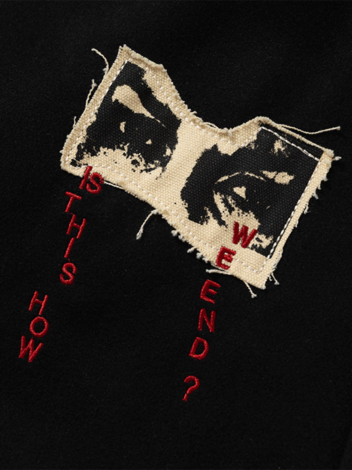 Jersey Deconstructed Contrast Color Stitching Print T-shirt - 2407