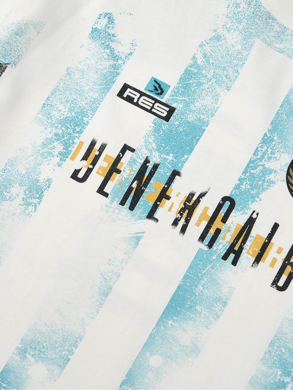 Retro Mottled Striped Badge Print Long Sleeve T-Shirt