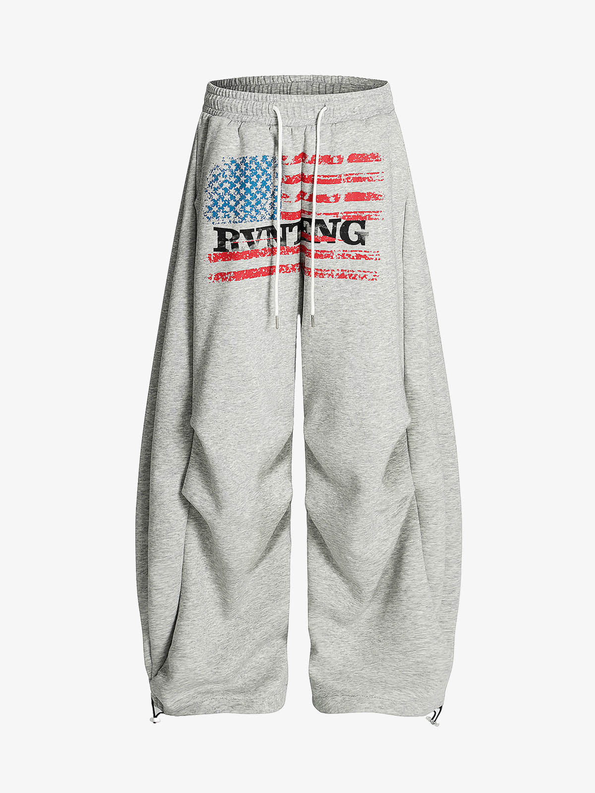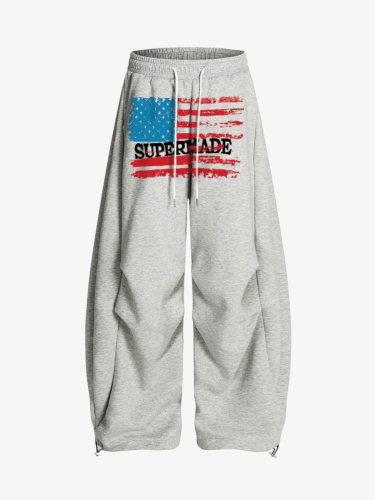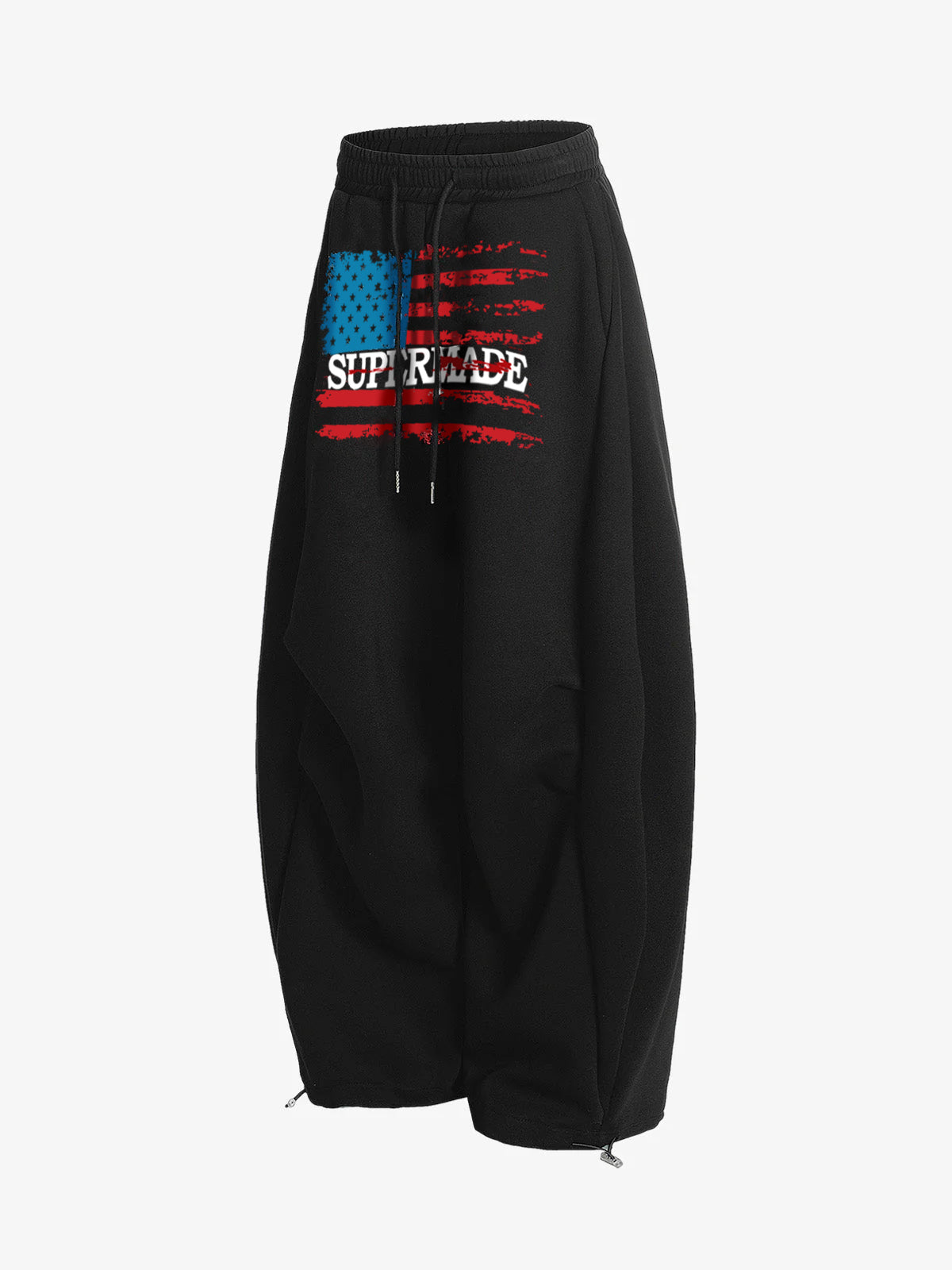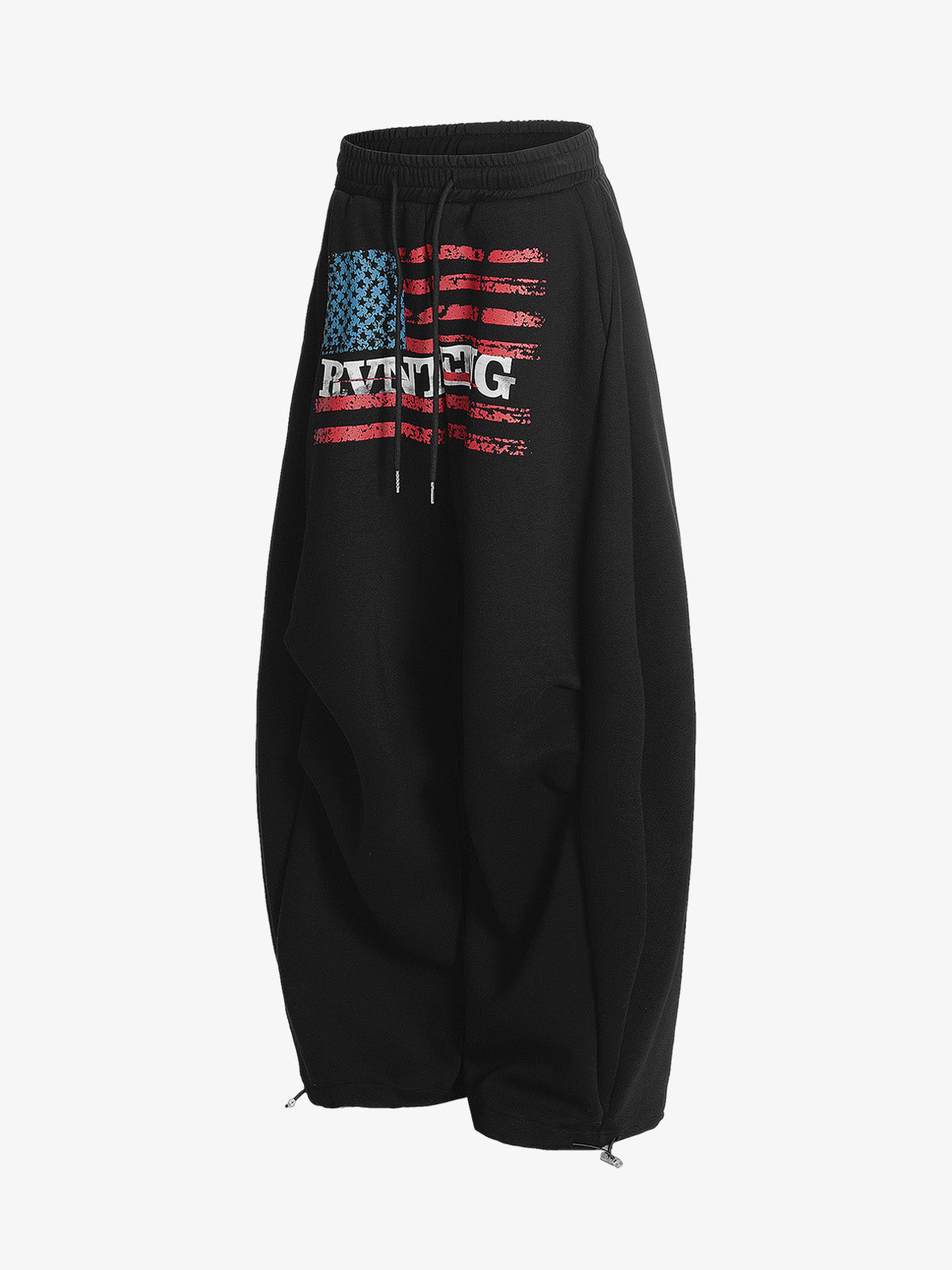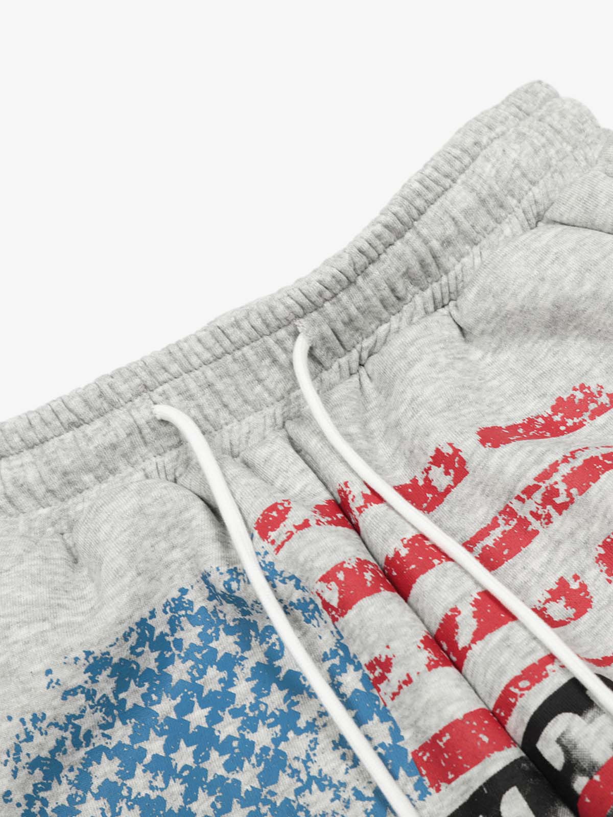• Design Elements: Distressed American Flag Print, Drawstring Waistband, Loose Fit