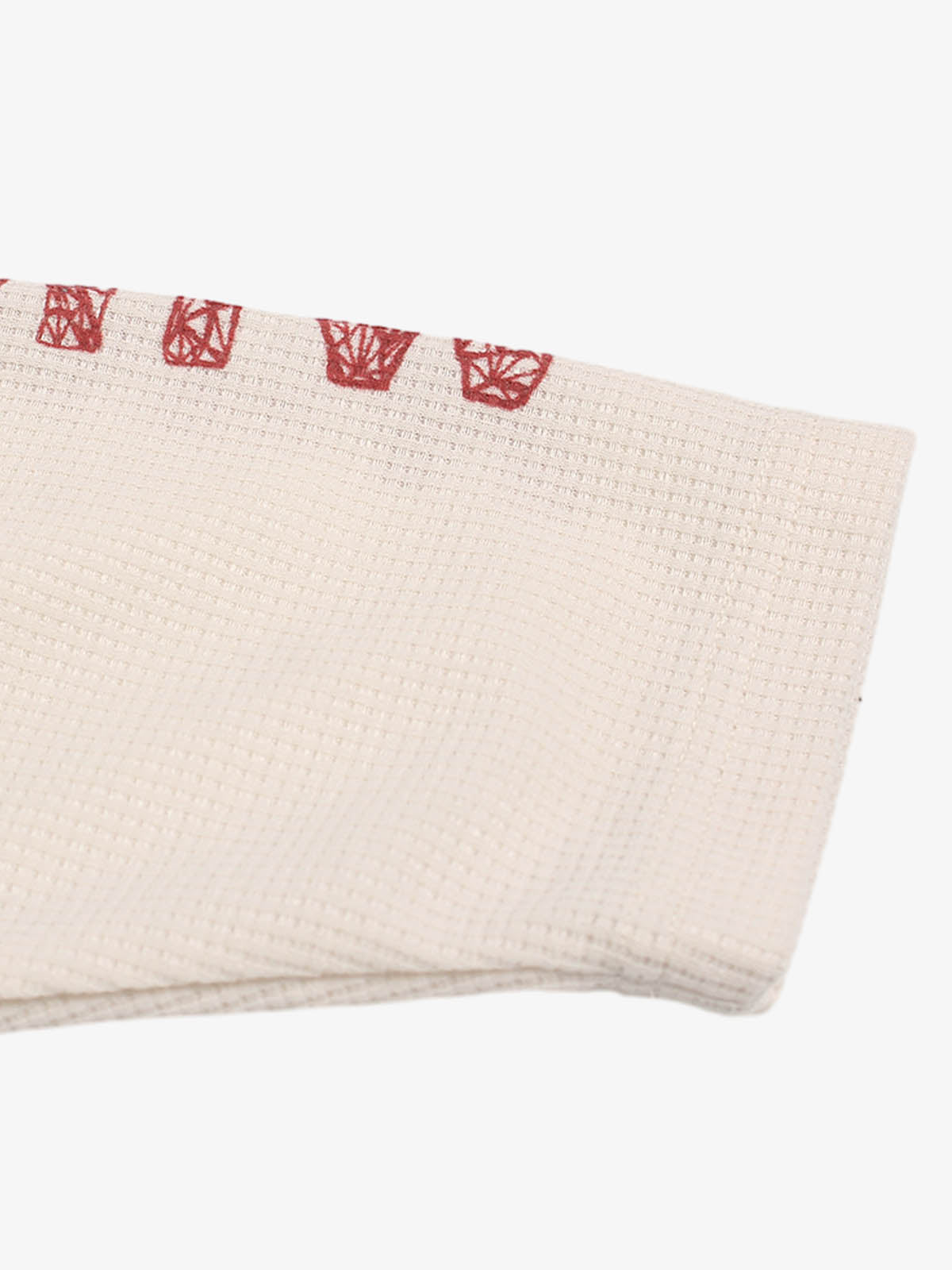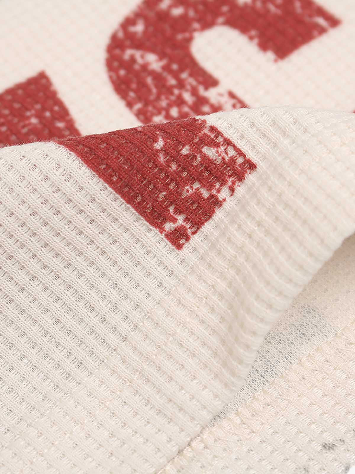 Retro Letter Print Waffle Simplicity Long-Sleeved T-Shirt