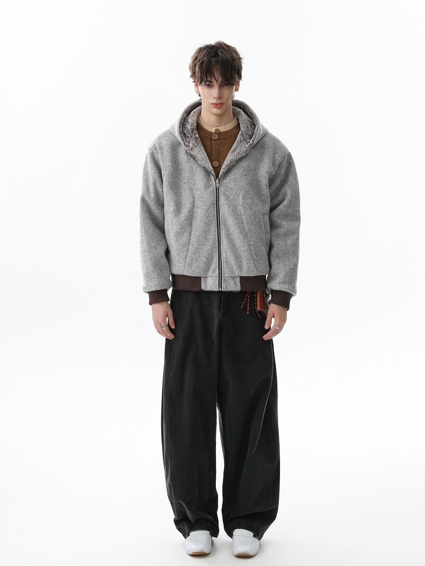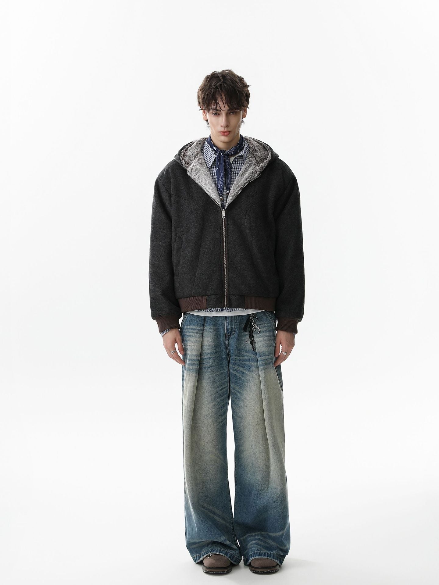Retro Reversible Fleece Lined Zip-up Hooded Jacket