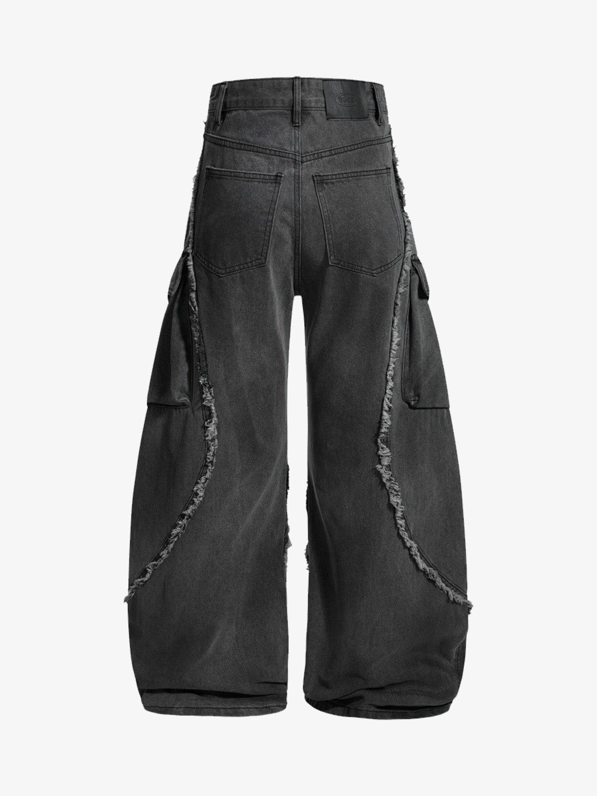 Retro Washed Distressed Deconstructed Patchwork Barrel Jeans