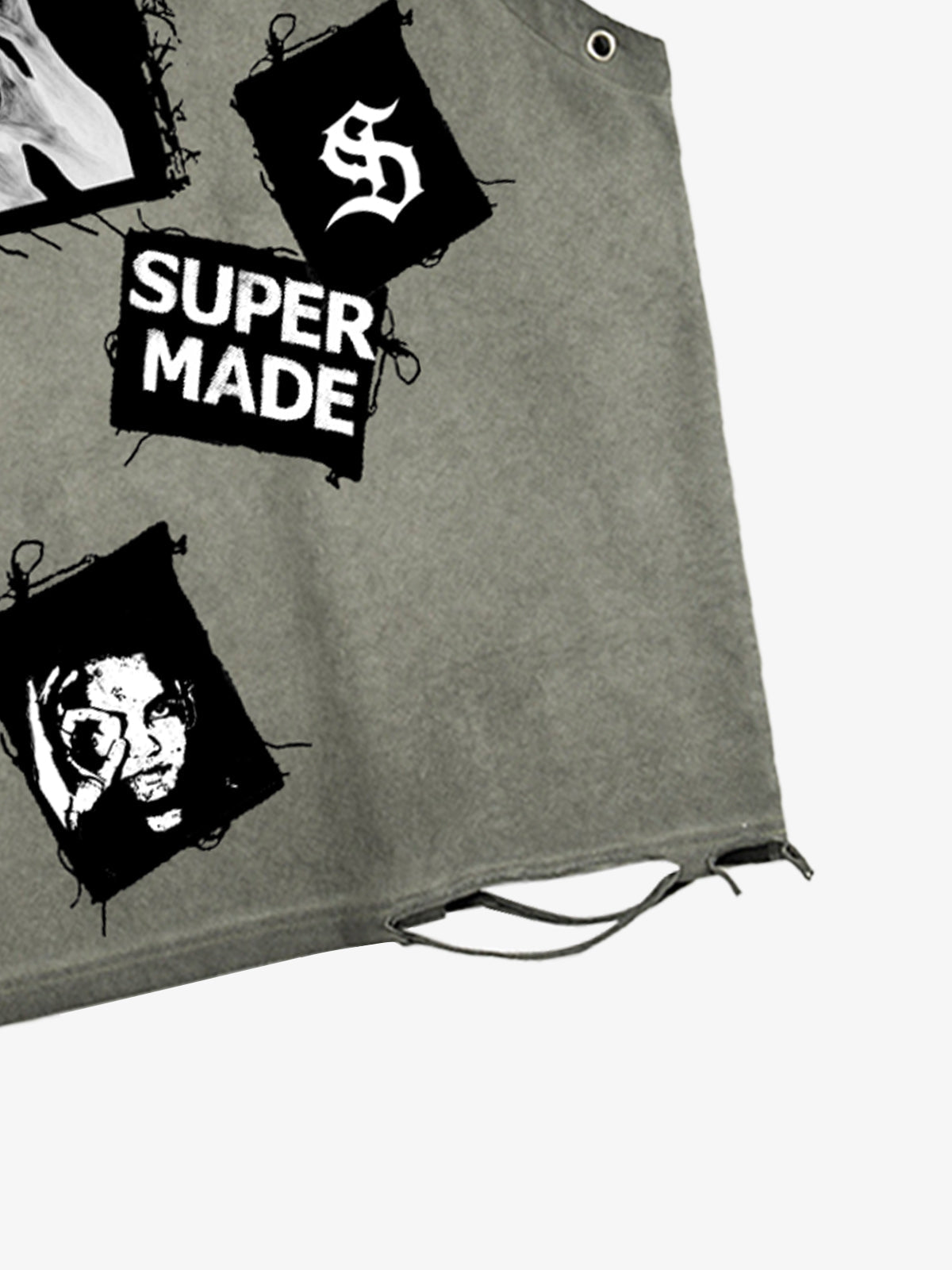 • Details: Grommeted Side Panels, Frayed Hem Edges, Bold Front Graphic Print