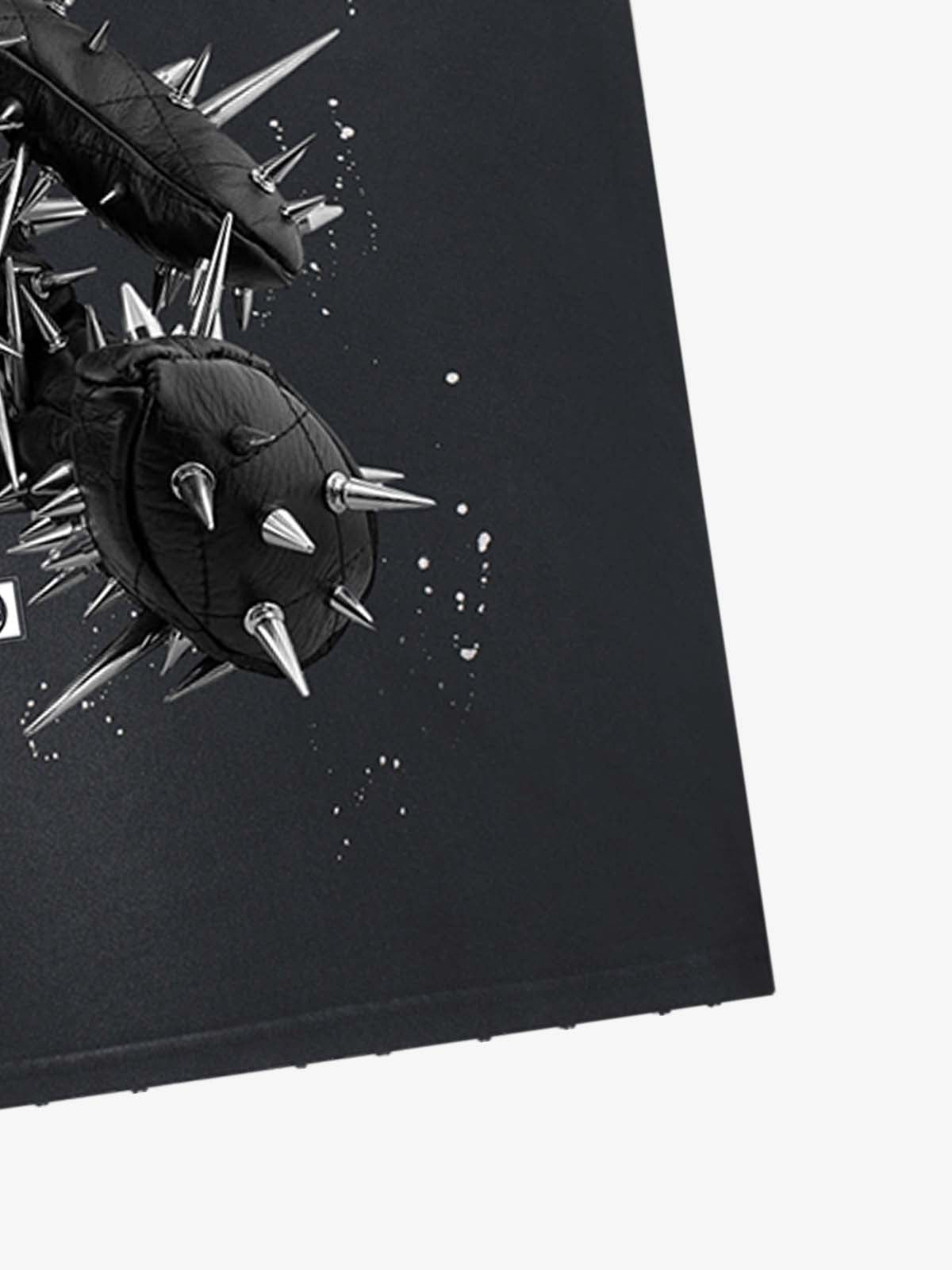 • Design Elements: Central Snake Wrapped Around Sword Graphic, Splatter Effect Details, Minimalist Text Slogan