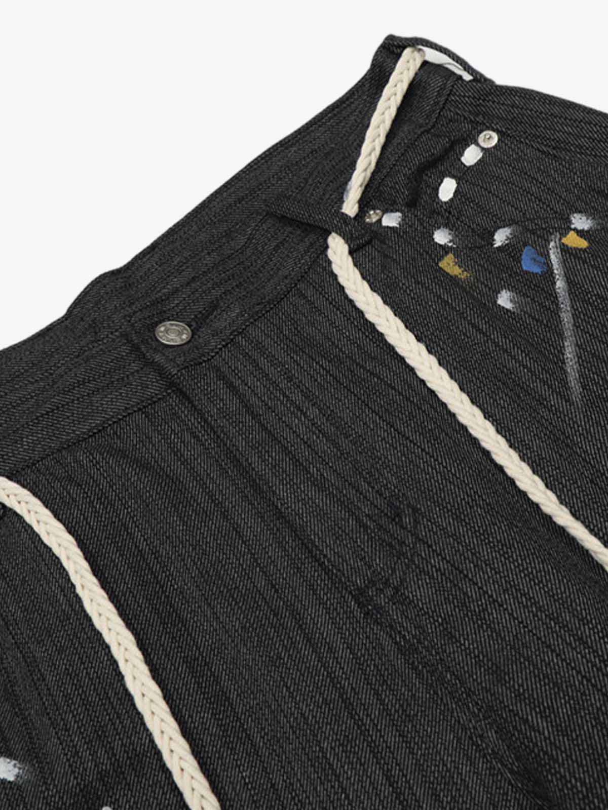 Street Contrast Artistic Graffiti Drawstring Jeans