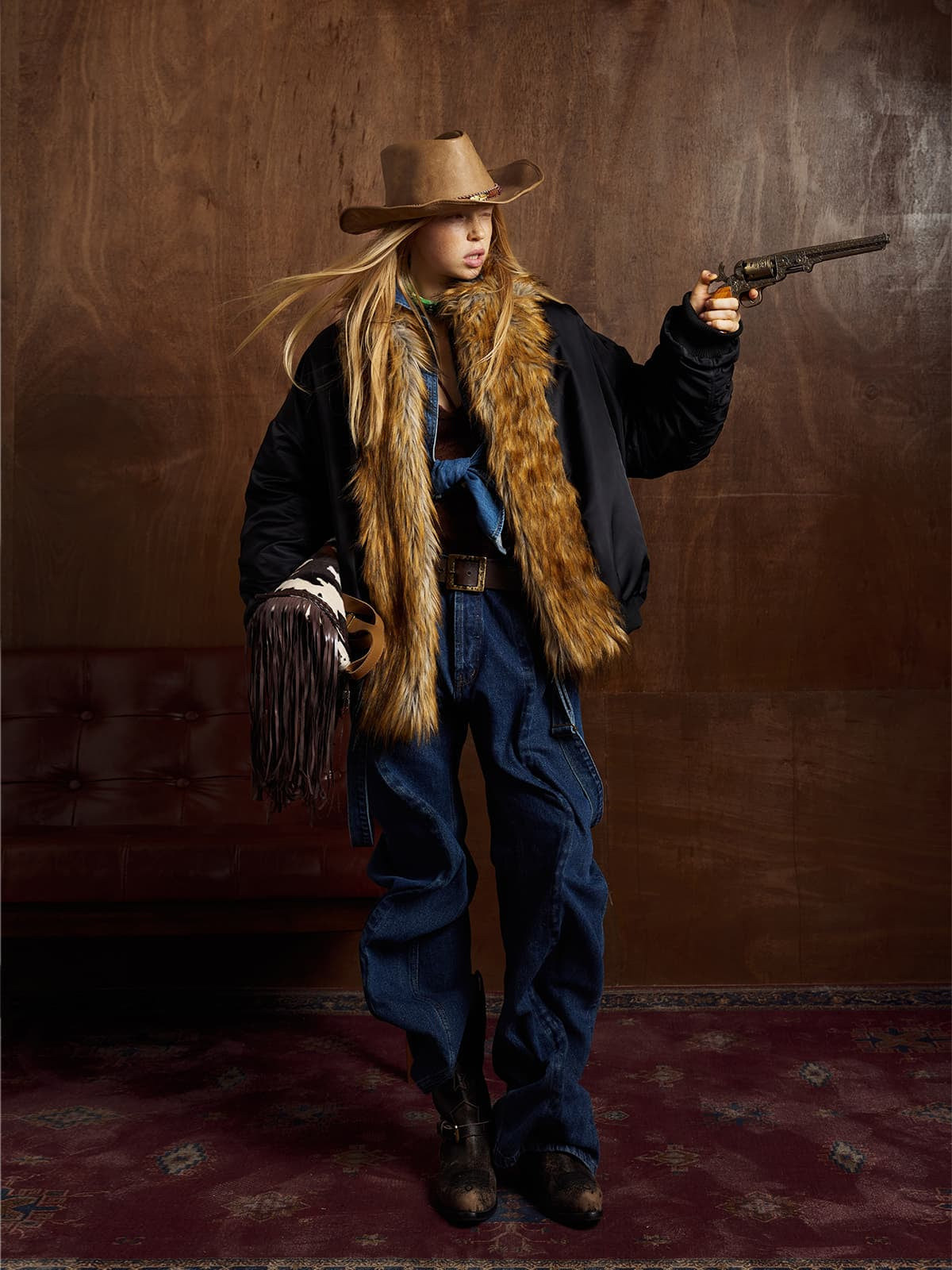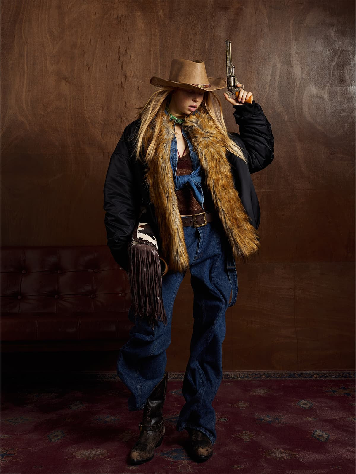 • Design Elements: Faux fur collar and cuffs, button closures, patch pockets