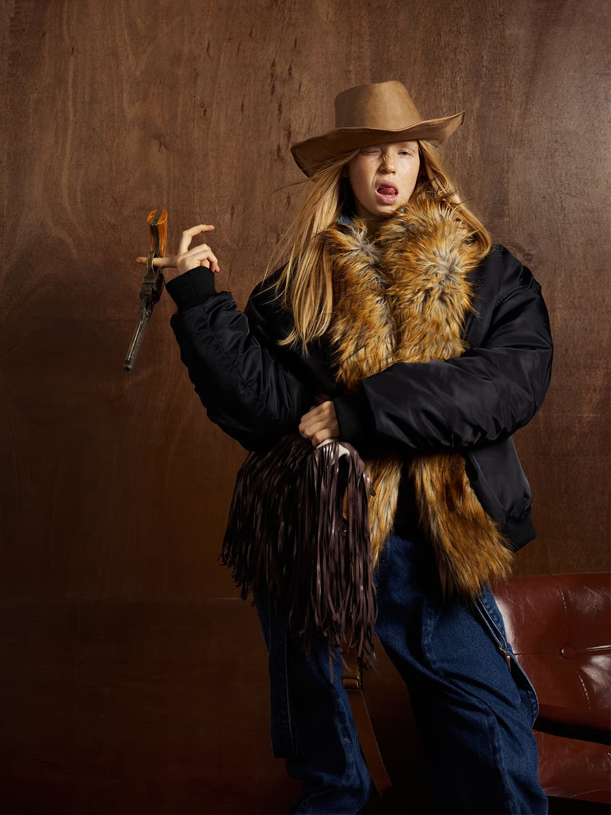• Luxurious faux fur trim adds warmth and style to your outfit