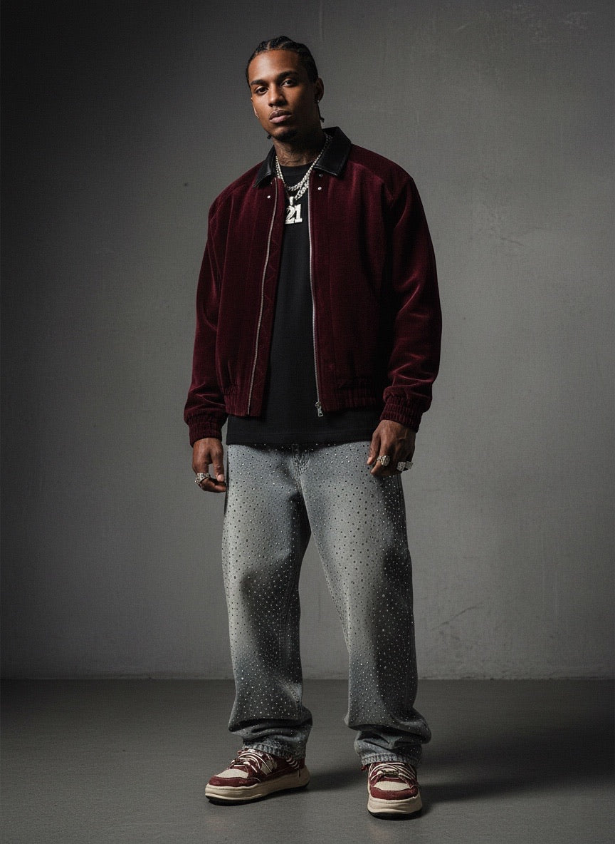 Street Denim Rhinestone-Embellished Baggy Jeans