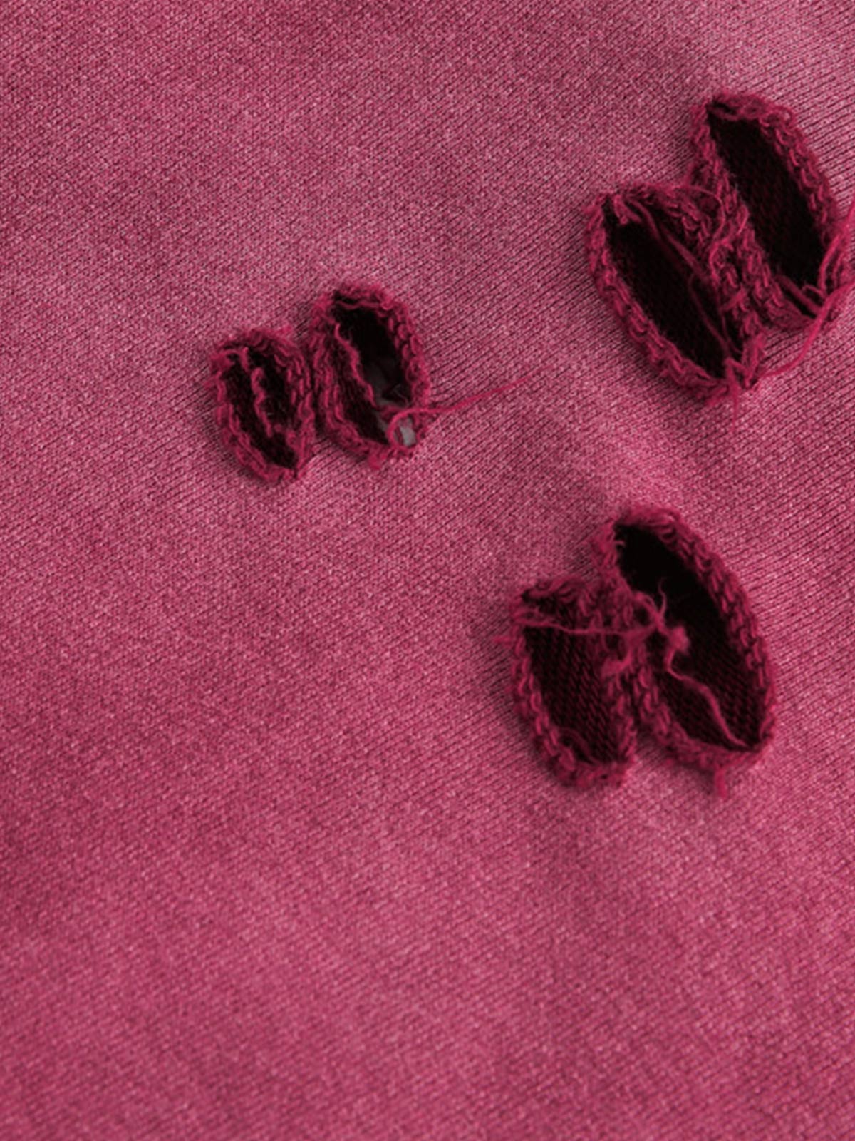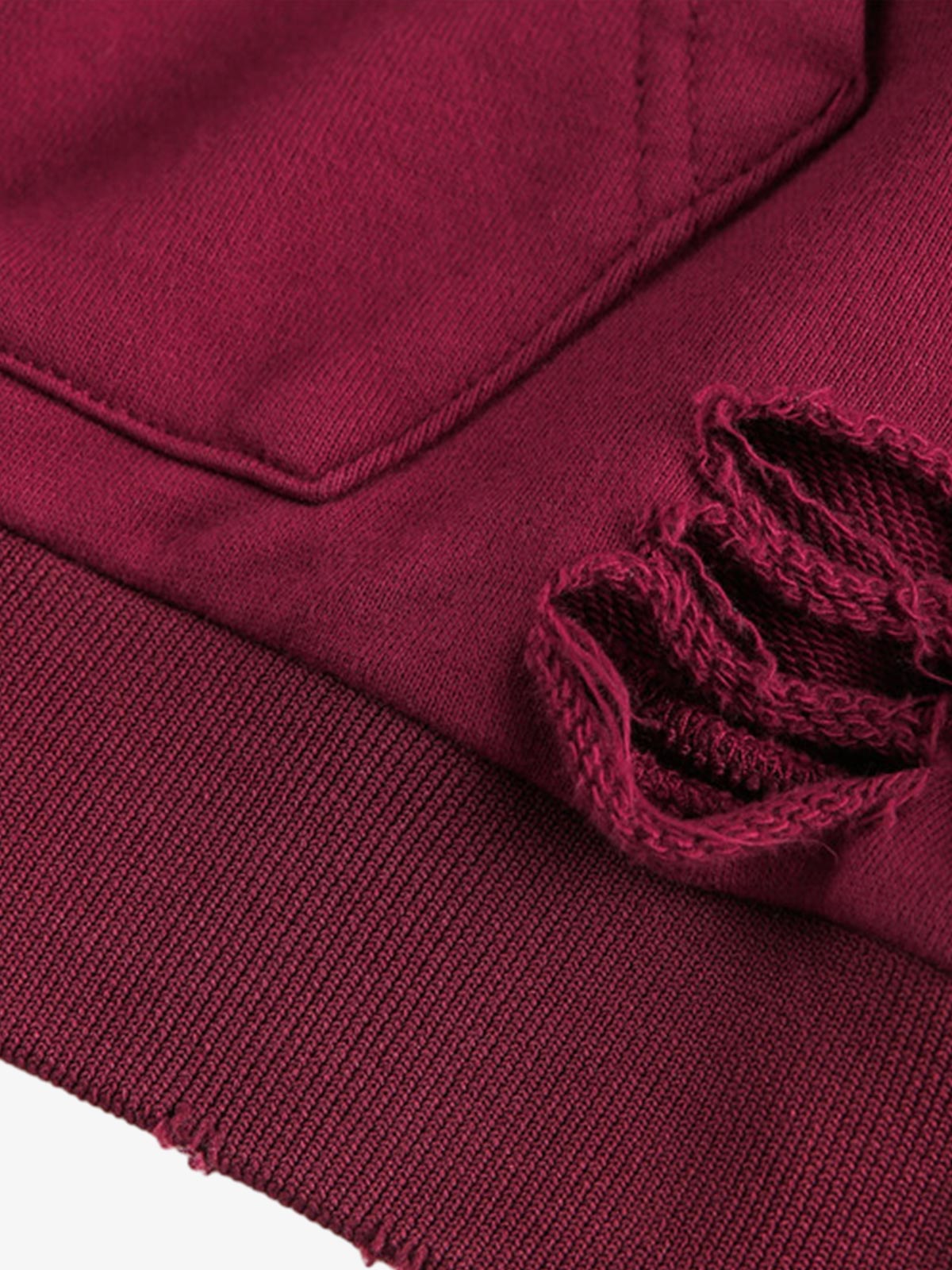 • Detail Features: Half-zip closure, front pocket, distressed cut-out details on shoulders and sleeves