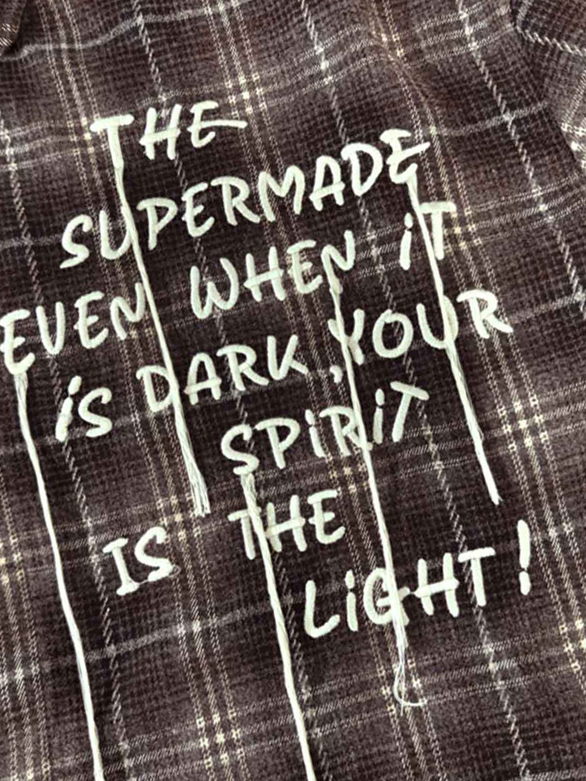 The embroidered typography adds a distinctive artistic touch to your outfit