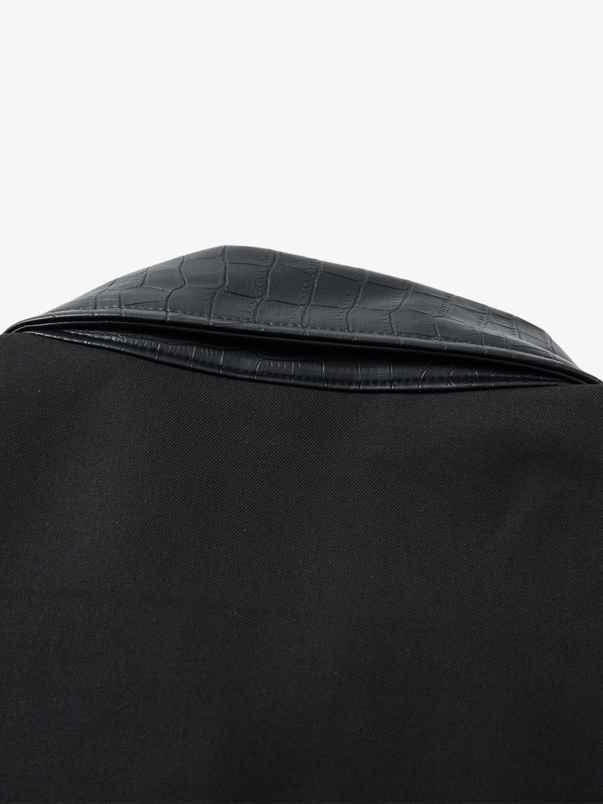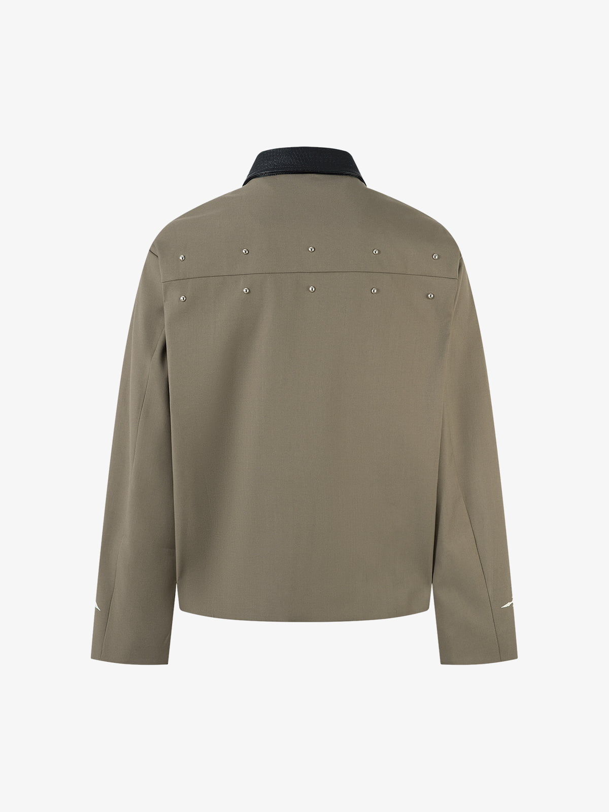 • The leather-like collar enhances the jacket's modern and edgy look.