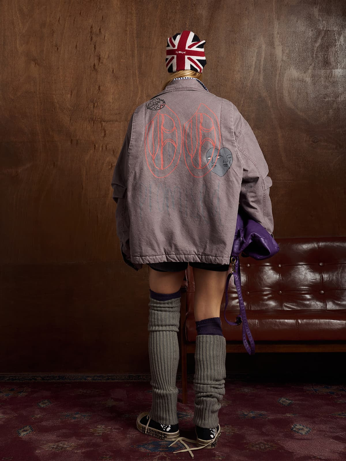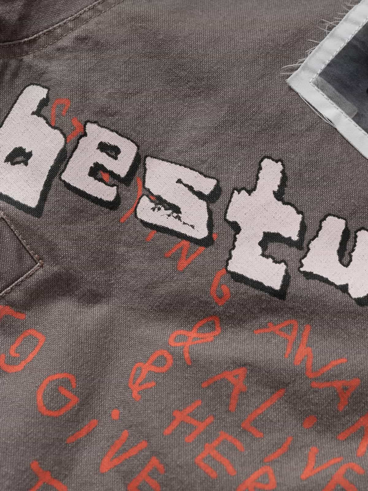 Street Graffiti Distressed High-Neck Padded Cotton Jacket