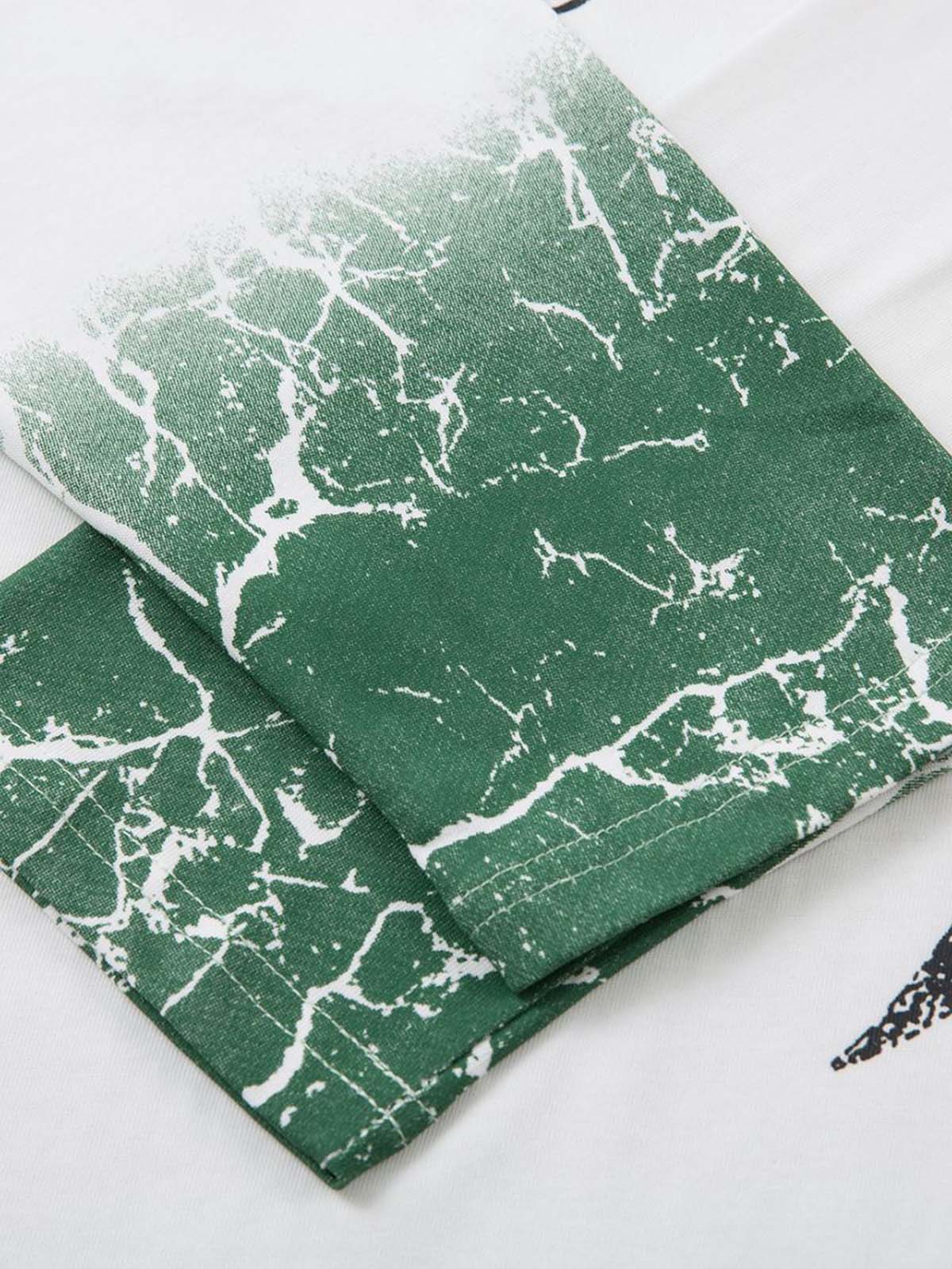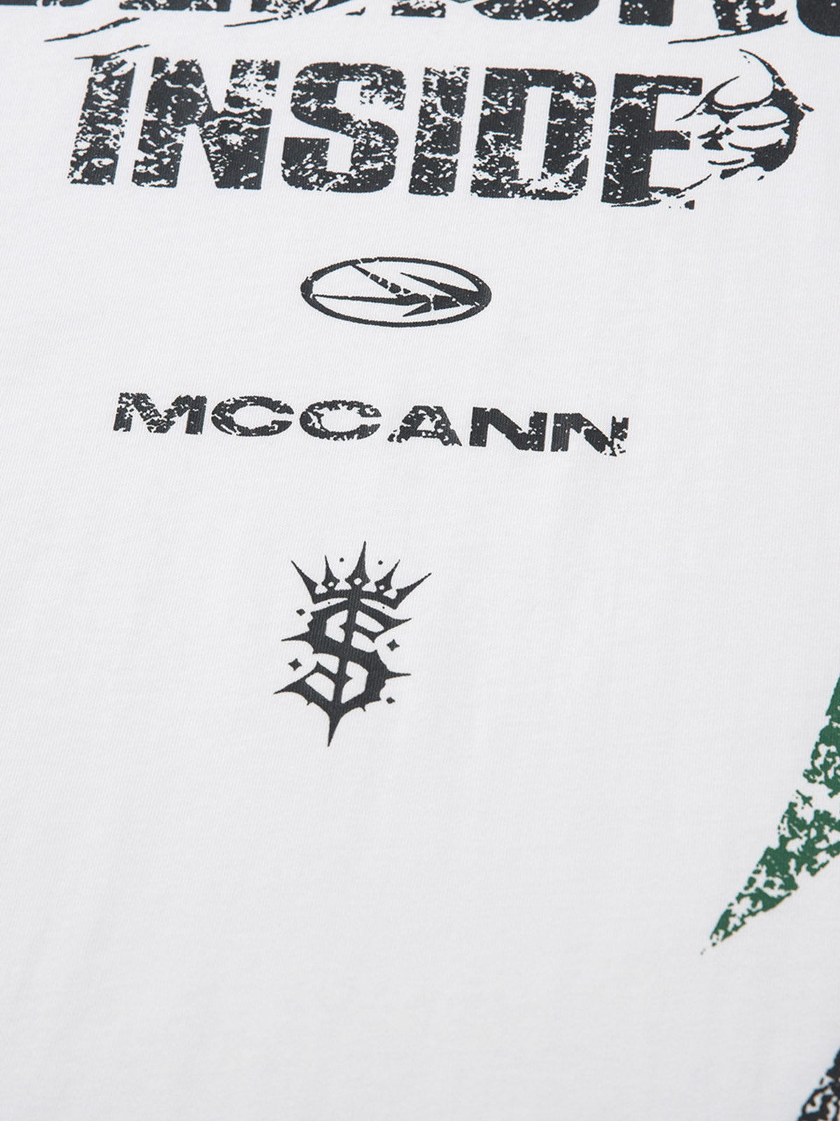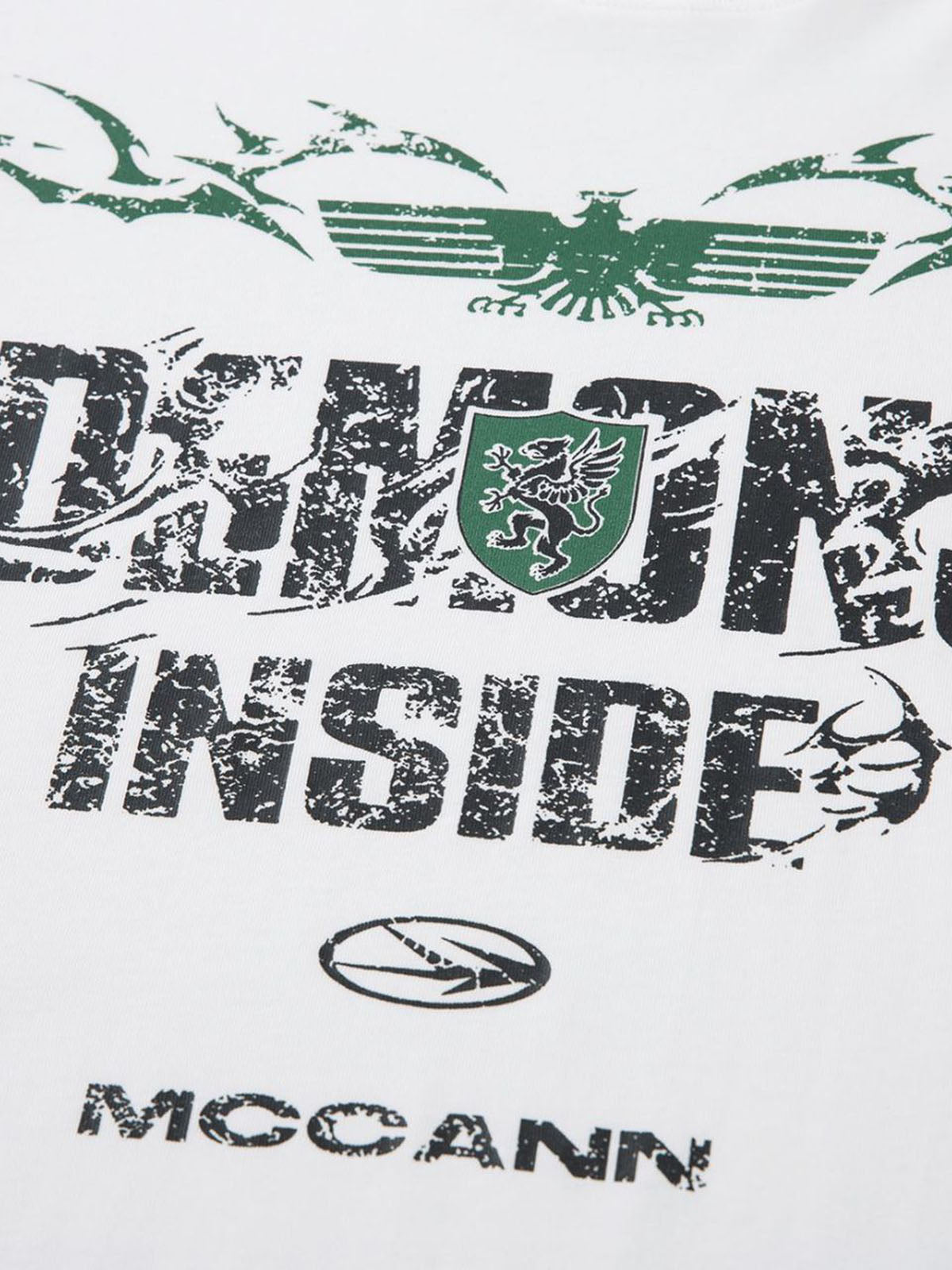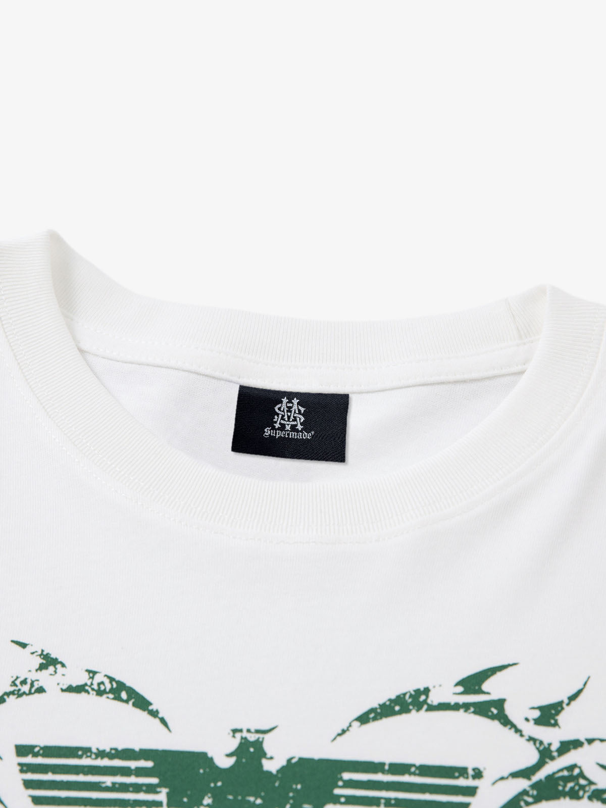 • Design Elements: Bold graphic print with distressed effect, eagle motif, and text design