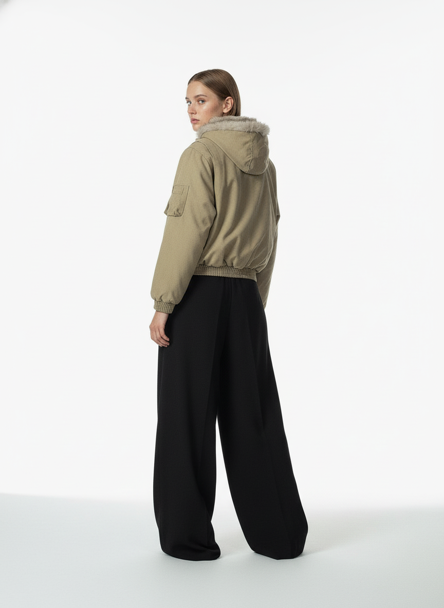 Faux Fur Lined Zip Up Hooded Bomber Jacket