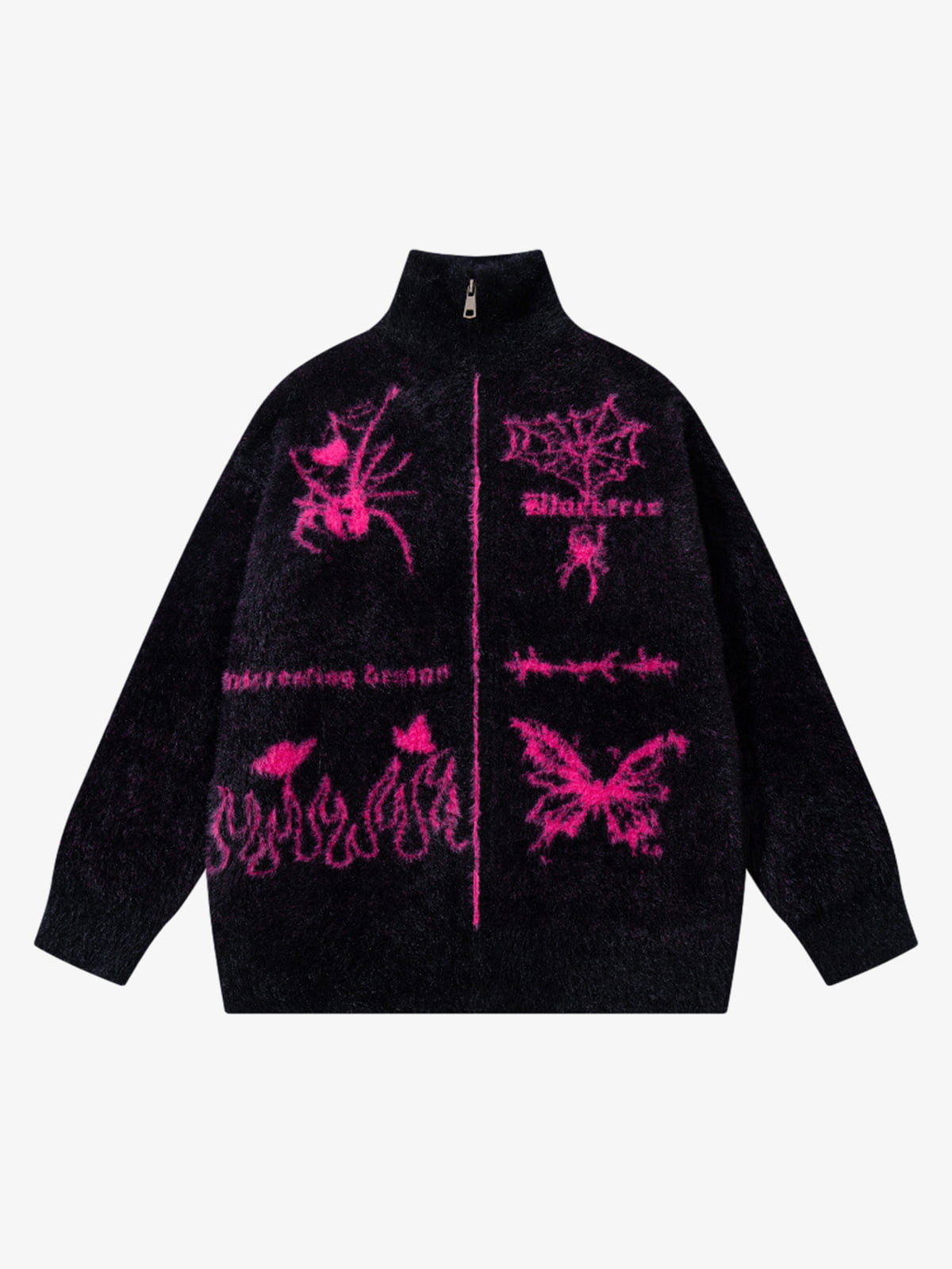 Street Spider And Butterfly Patterns Fluffy Zipper Sweater