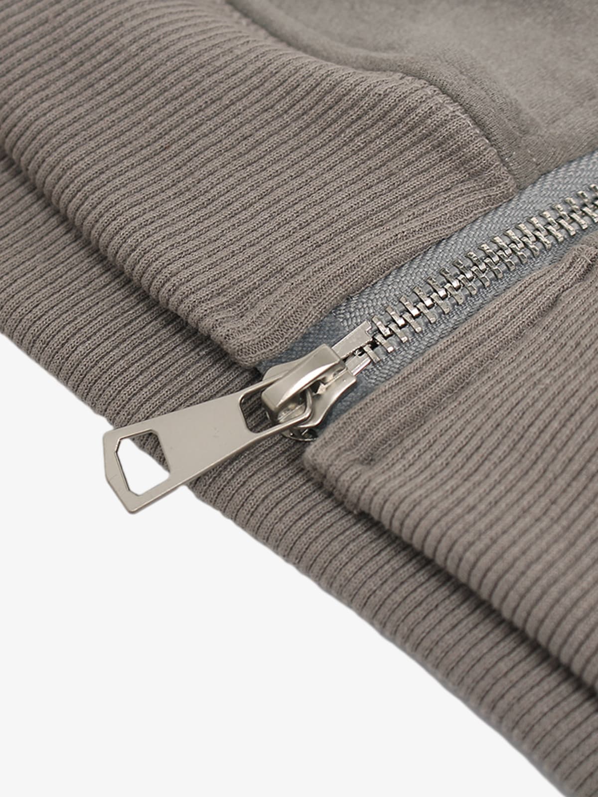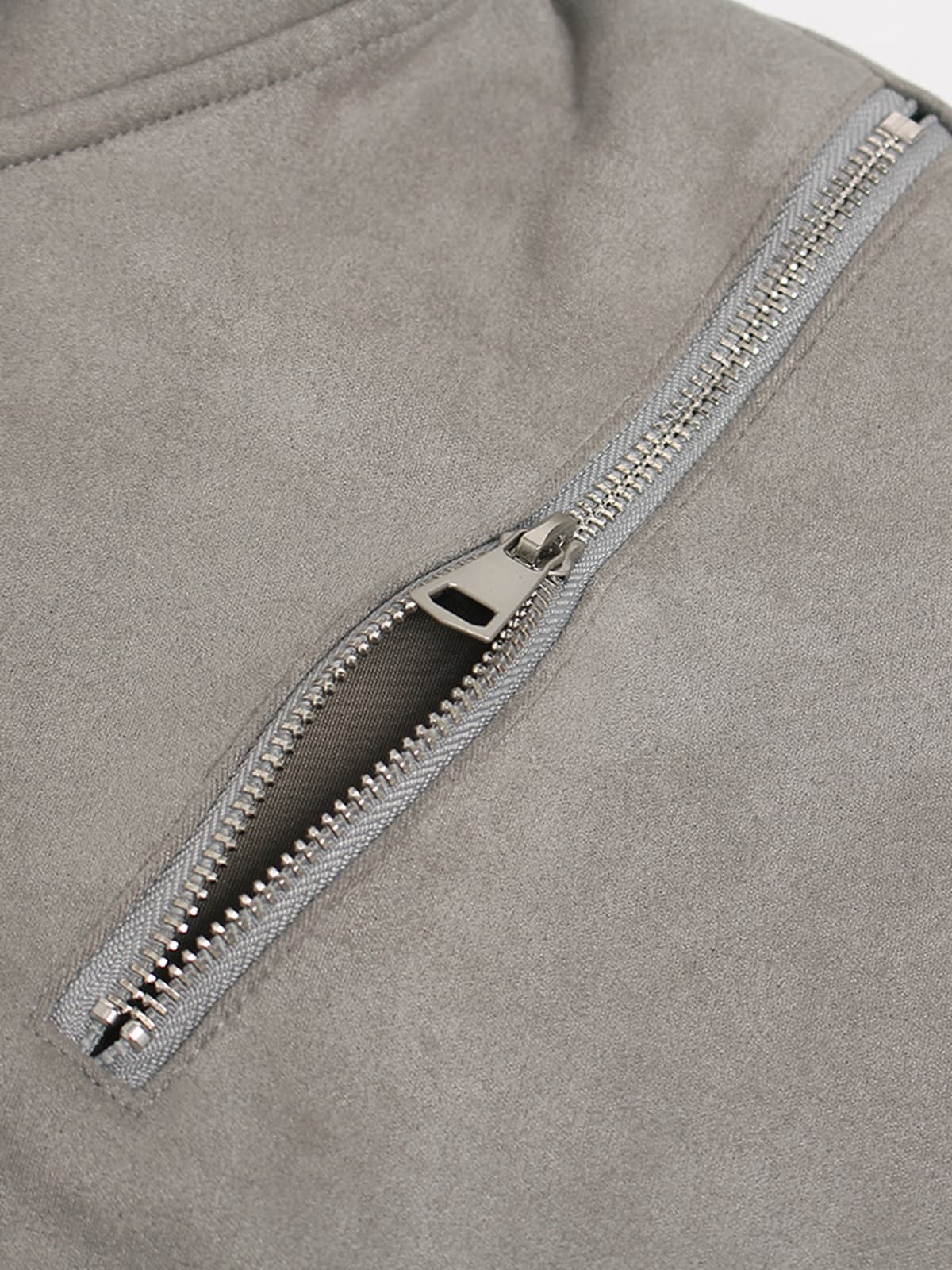 Suede Double-Ended Zippered Cropped Hooded Jacket