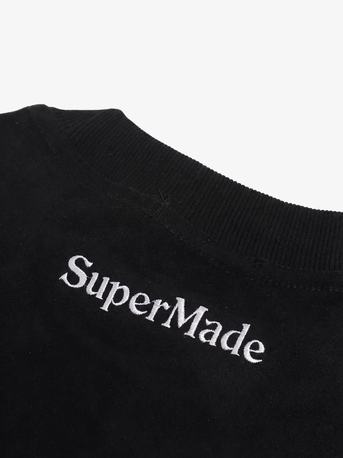 Crafted from suede fabric, this short-sleeve tee features a relaxed fit with a soft, substantial feel that exudes understated luxury. The color-blocked panel design enhances dimensionality, while embroidered logo details on both sides add depth and texture. Designed for creating refined streetwear looks with a unique tactile experience.