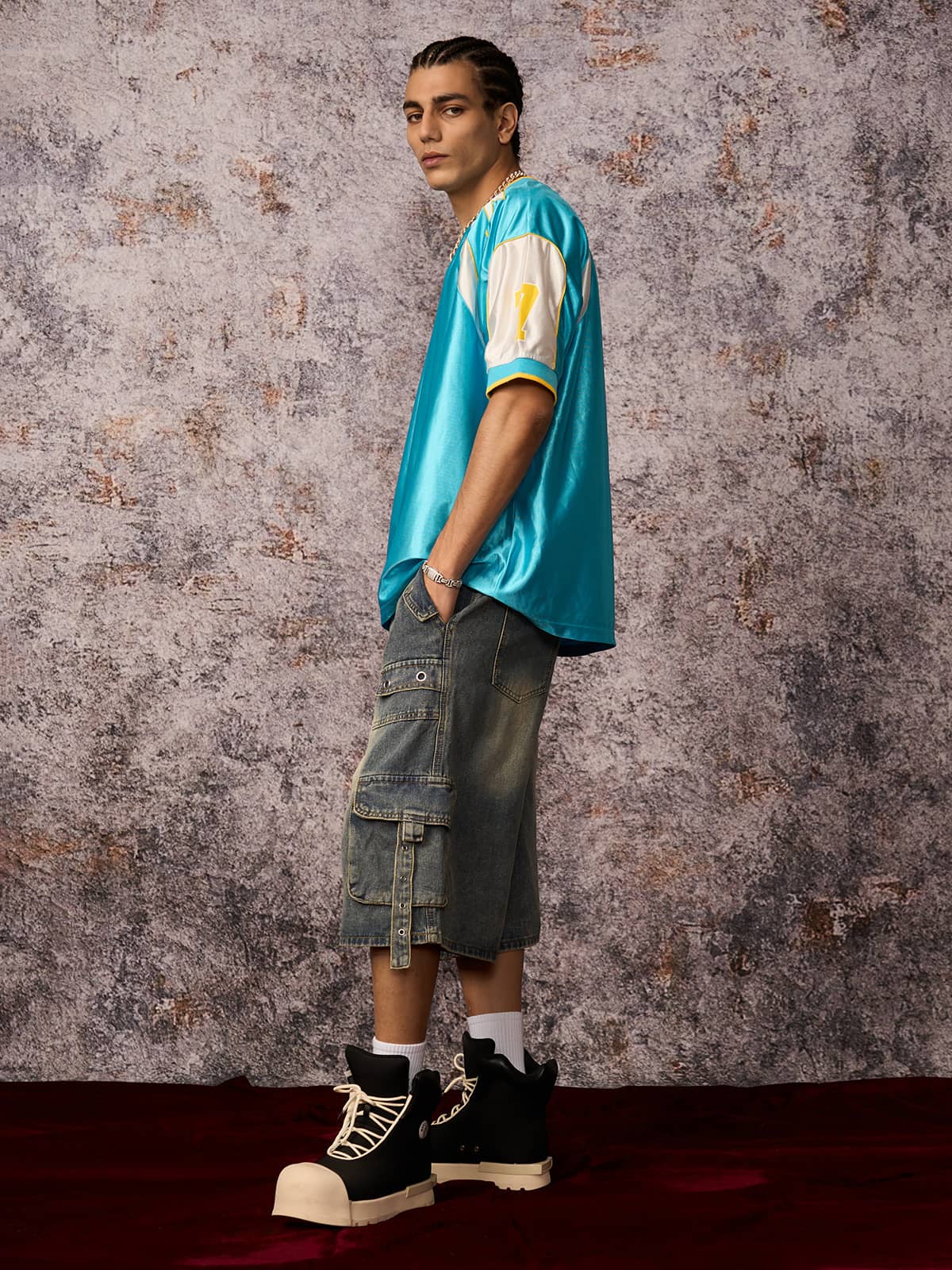 Jersey Deconstructed Contrast Color Stitching Print T-shirt - 2407