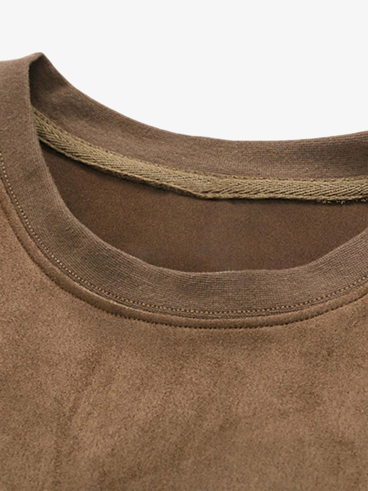 Retro Letter Print Waffle Simplicity Long-Sleeved T-Shirt