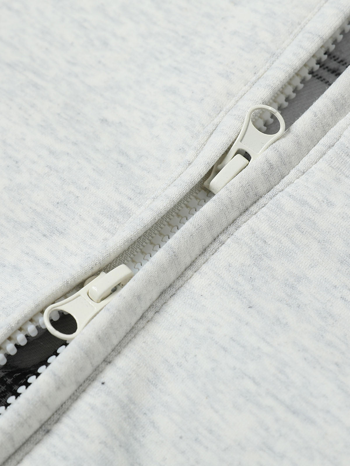 Retro Plaid Lining Zip Up Hooded Sweatshirt